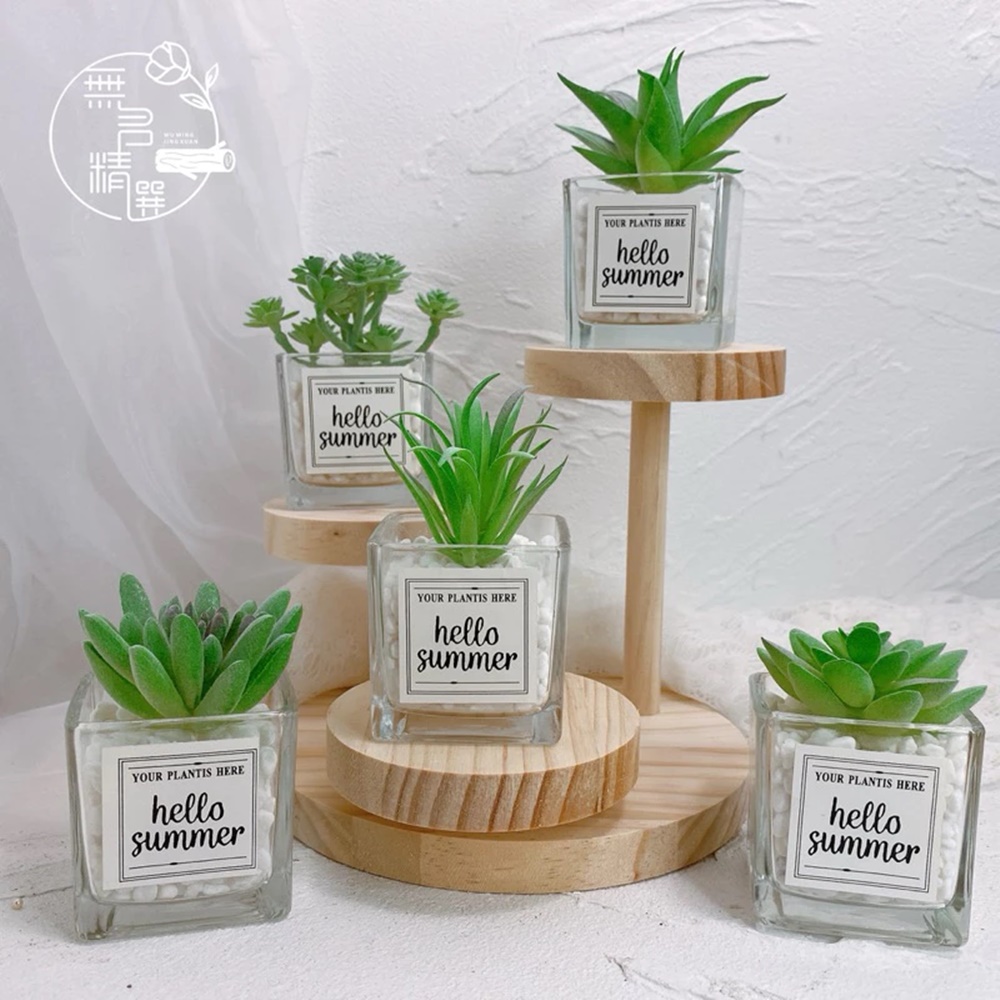 免澆水的仿真多肉,收到的時候長這樣,把固定多肉的保麗龍放進玻璃罐,然後鋪上白石頭,多肉直接插進去,調整一下角度。需要自己動手組裝唷,這個過程很療癒,很簡單。