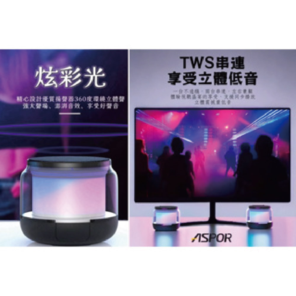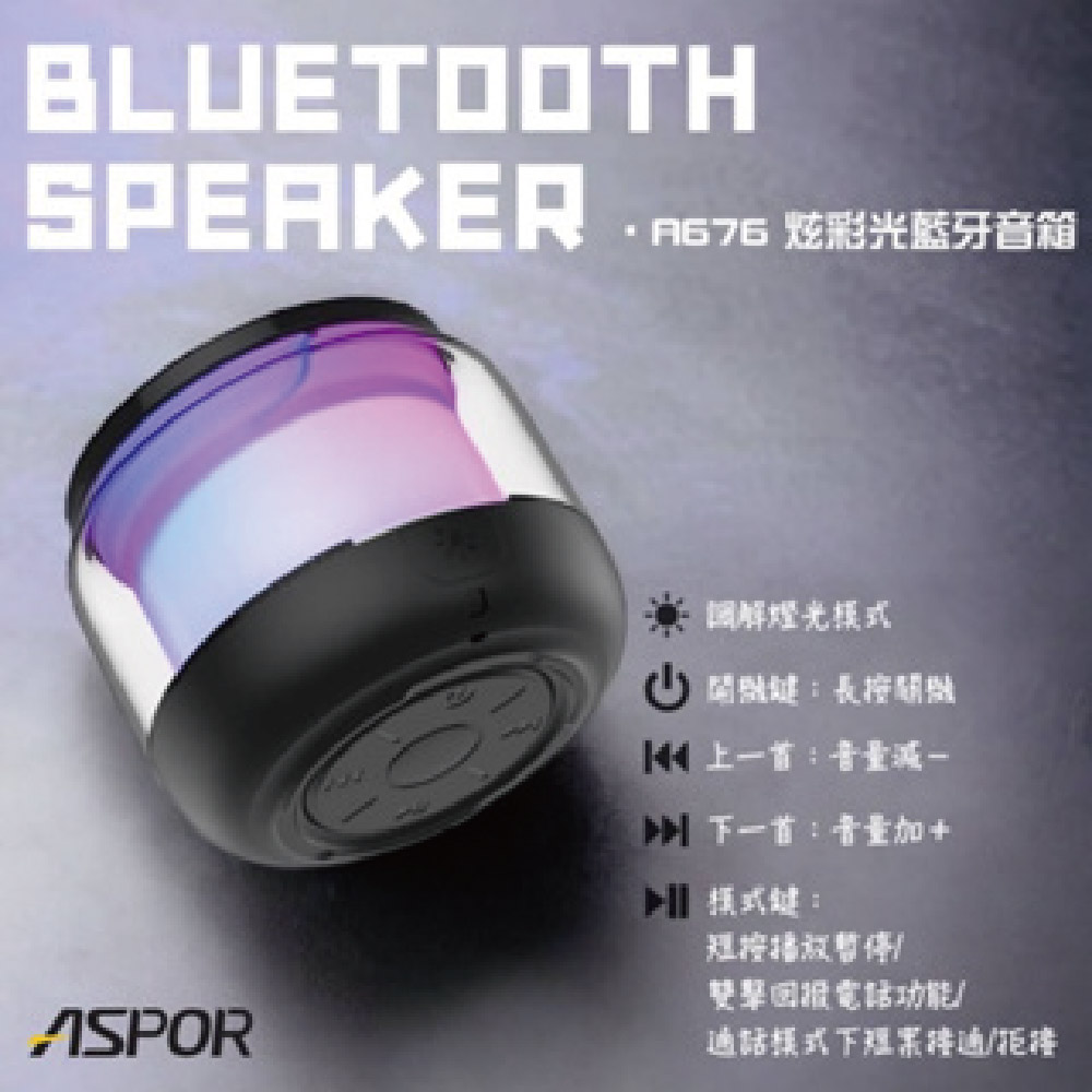 ASPOR 炫彩光無線藍牙音響 A676(藍芽喇叭)
