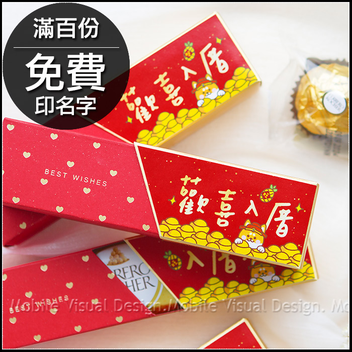 新居落成 時尚閃金包裝 金莎3顆入 歡喜入厝 入厝大吉 2款可挑 滿百份免費印名字 (新品上市特價中)