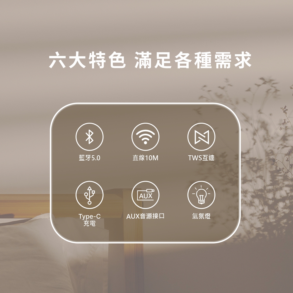 ✔ TWS互聯功能:兩顆喇叭配對,立體聲環繞音效更震撼。