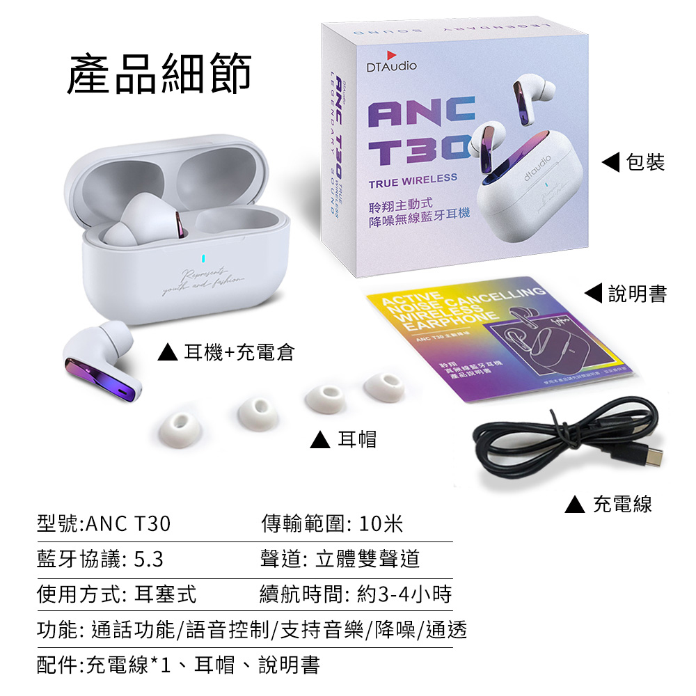 ◎聆翔T30 ANC主動式降噪無線耳機 強勢登場!