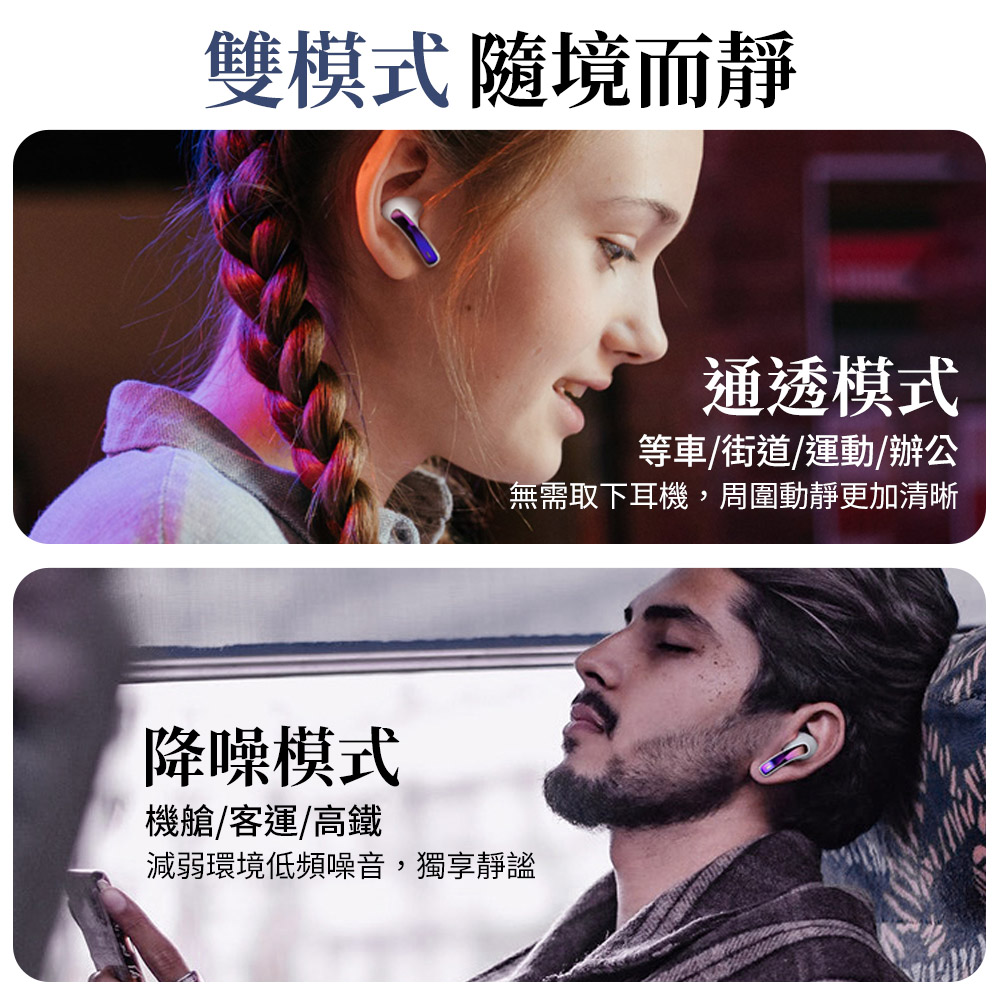 ✅雙模式·隨境而靜 — 配備降噪/通透雙模式,隨心而選。
