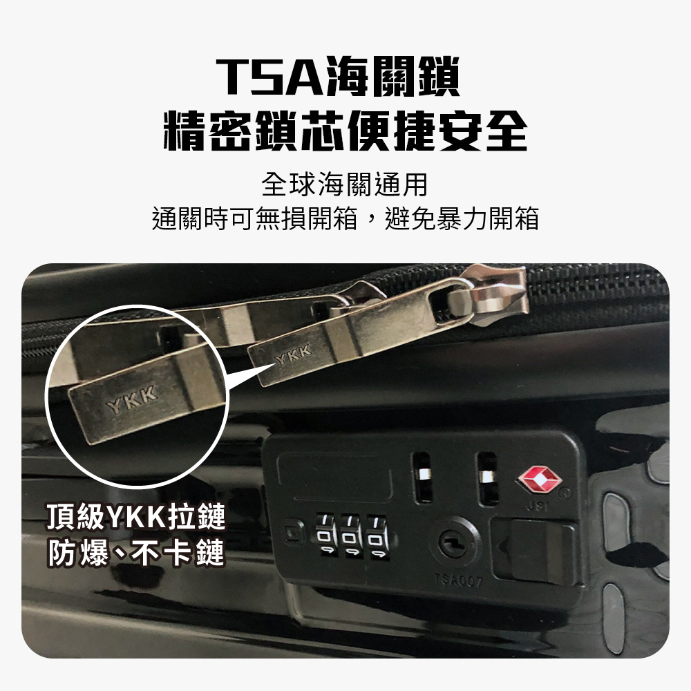 2.TSA國際海關鎖,多重安全保障。(20吋登機箱除外)