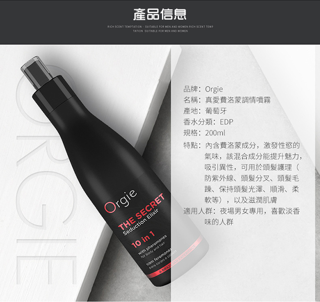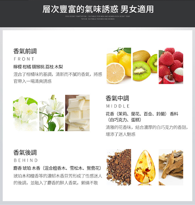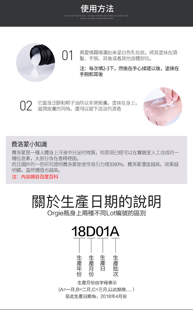2.內含有費洛蒙成分,激發性欲的氣味,該混合成分能提升魅力,吸引異性;