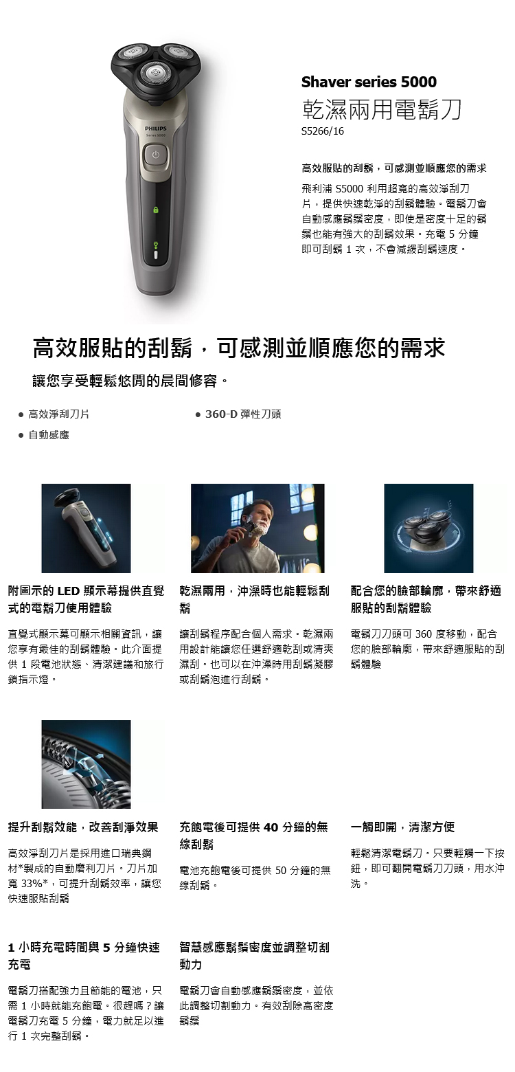 【Philips 飛利浦】S5266/16 多動向三刀頭電鬍刀
