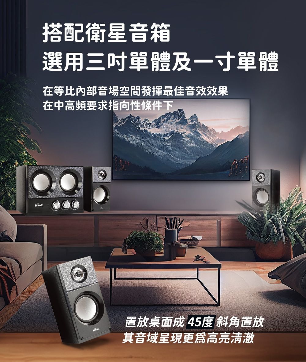 音箱選用三吋單體及一寸單體,在等比內部音場空間發揮最佳音效效果
