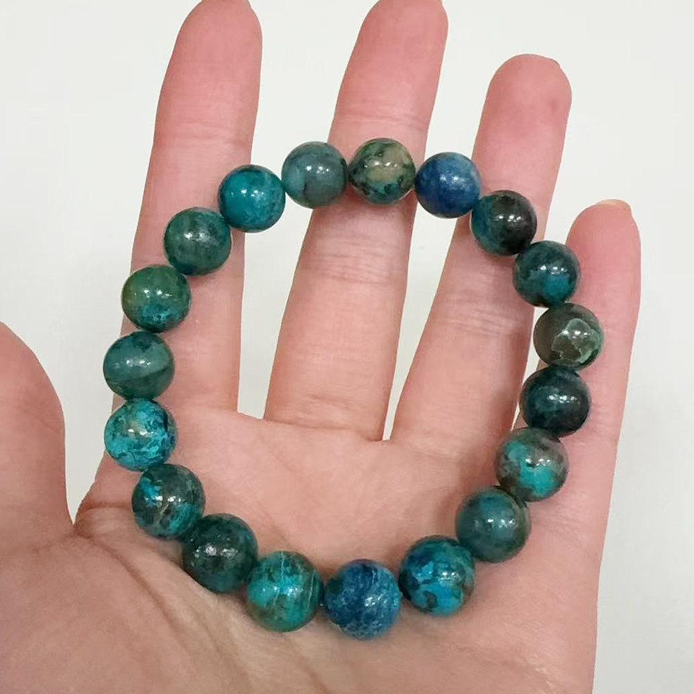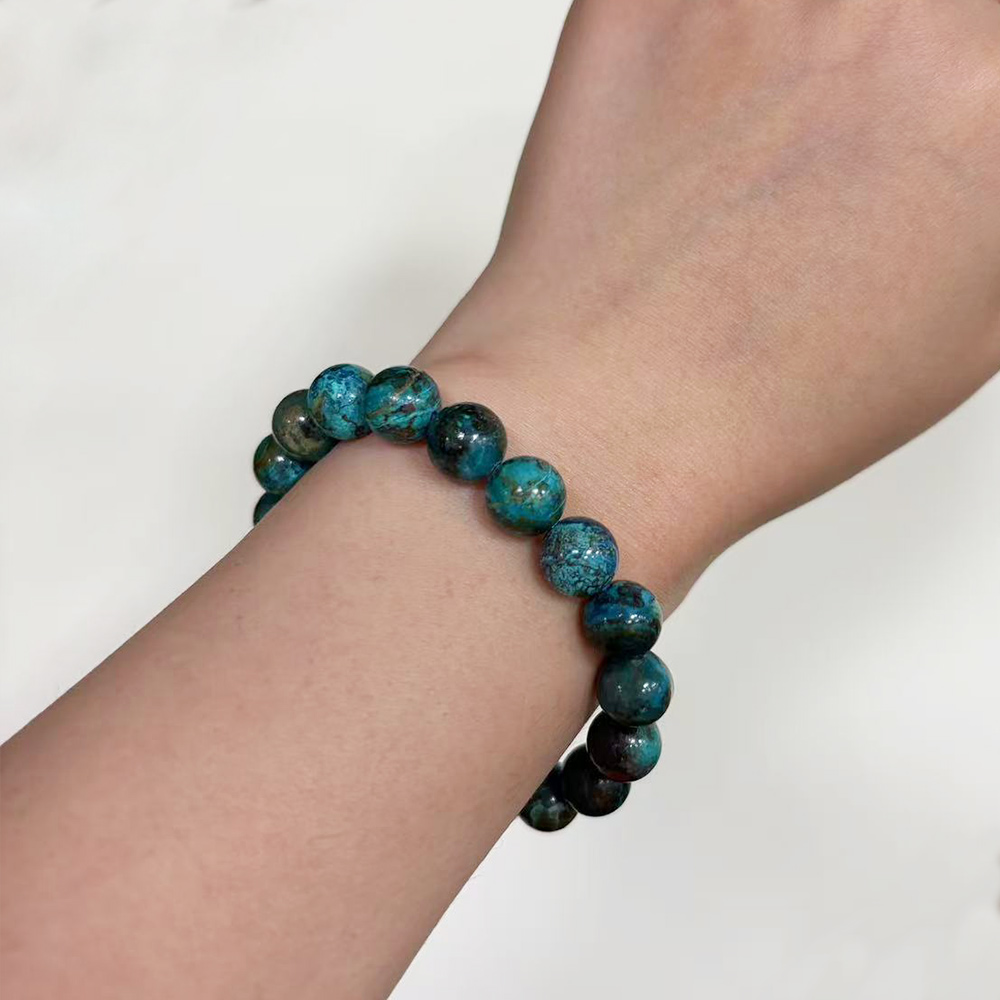 【Paiya 派亞】天然深色地球景色綠鳳凰松手鏈鳳凰松石優雅男女款圓珠手飾