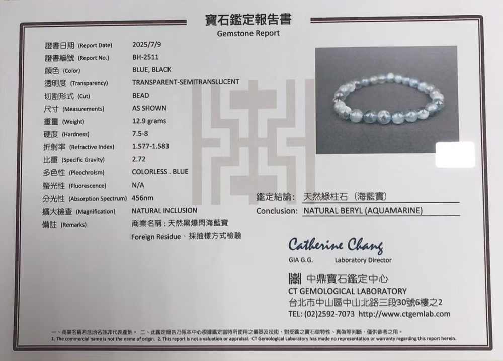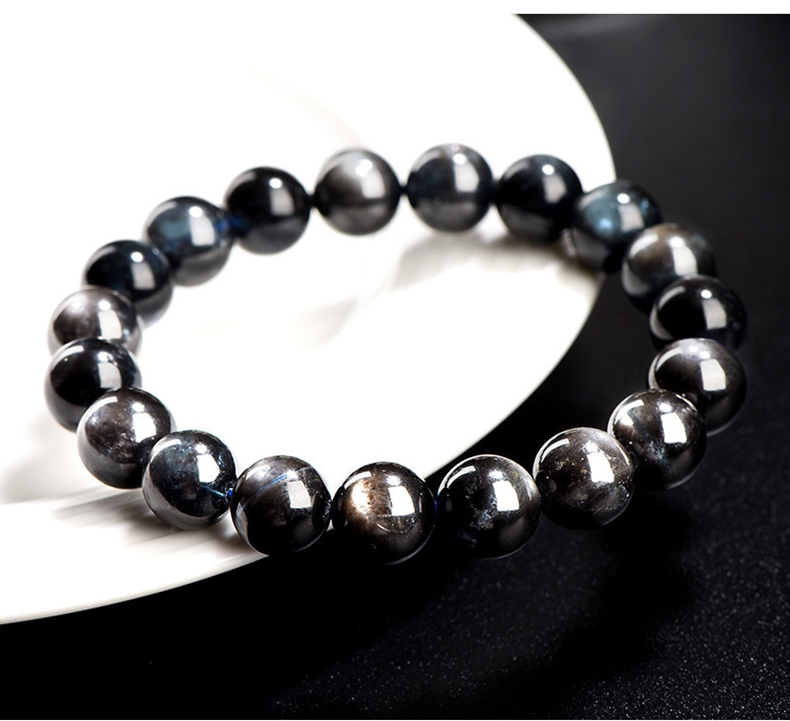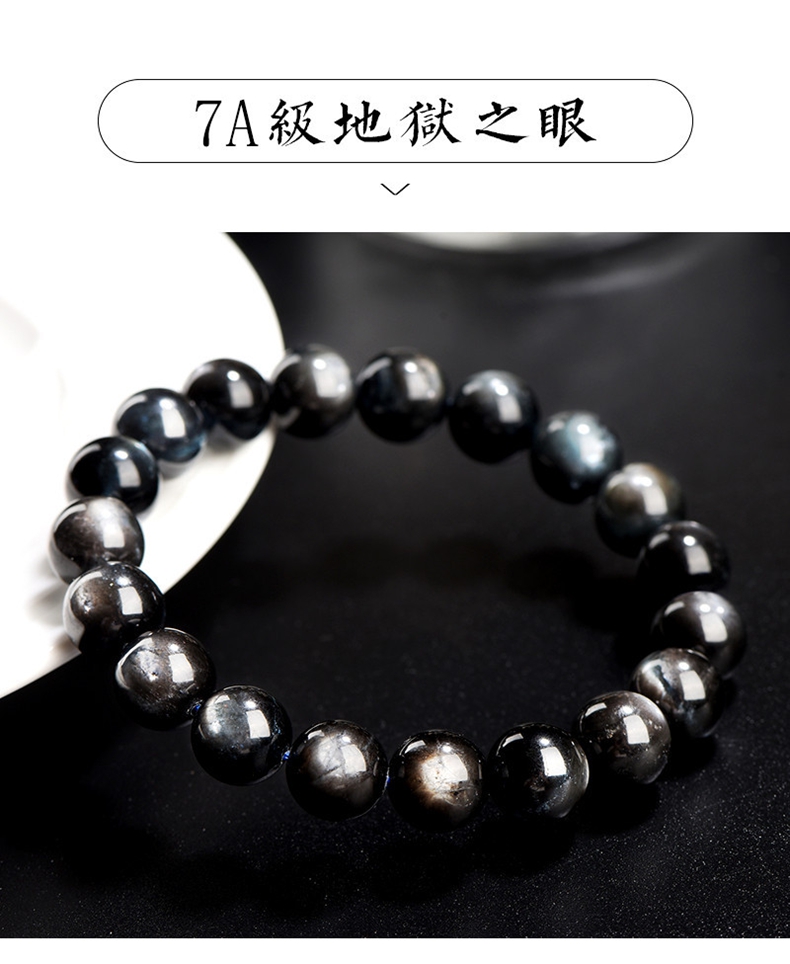 【Paiya 派亞】黑爆閃8mm黑色海藍寶手串女男星光貓眼地獄之眼魔鬼藍手鏈台灣有檢測