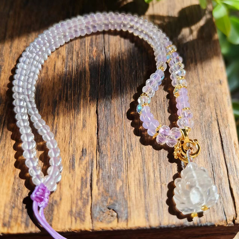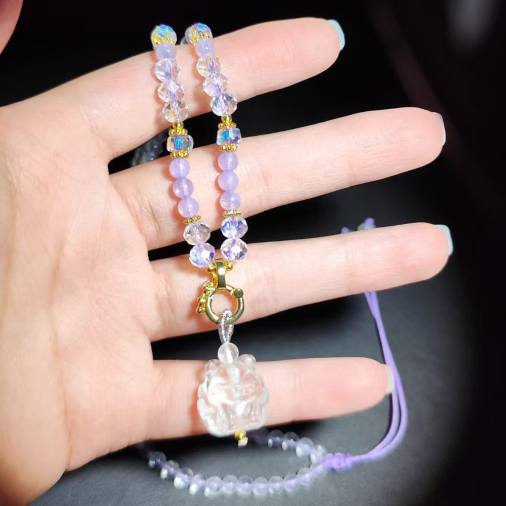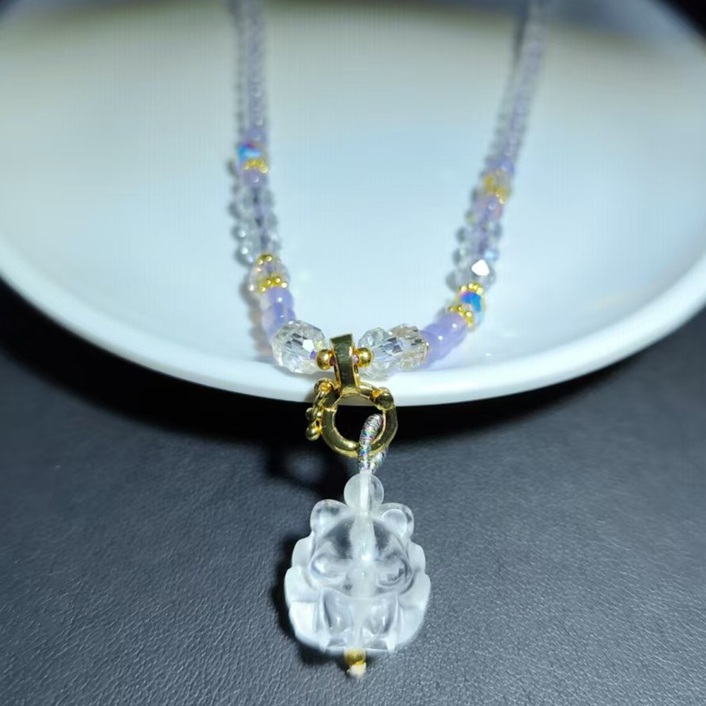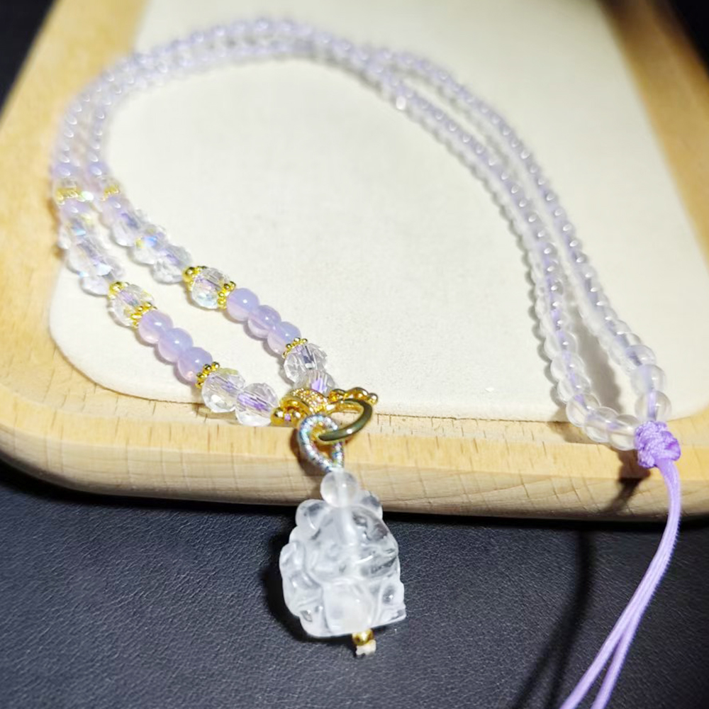 【Paiya 派亞】天然4.5mm紫玉晶+白水晶九尾狐狸吊墜萬能扣項鏈長短可調節