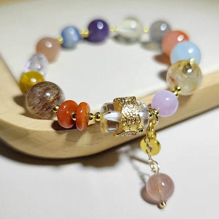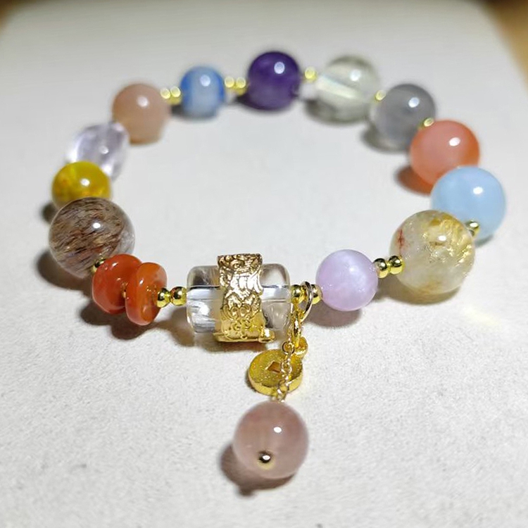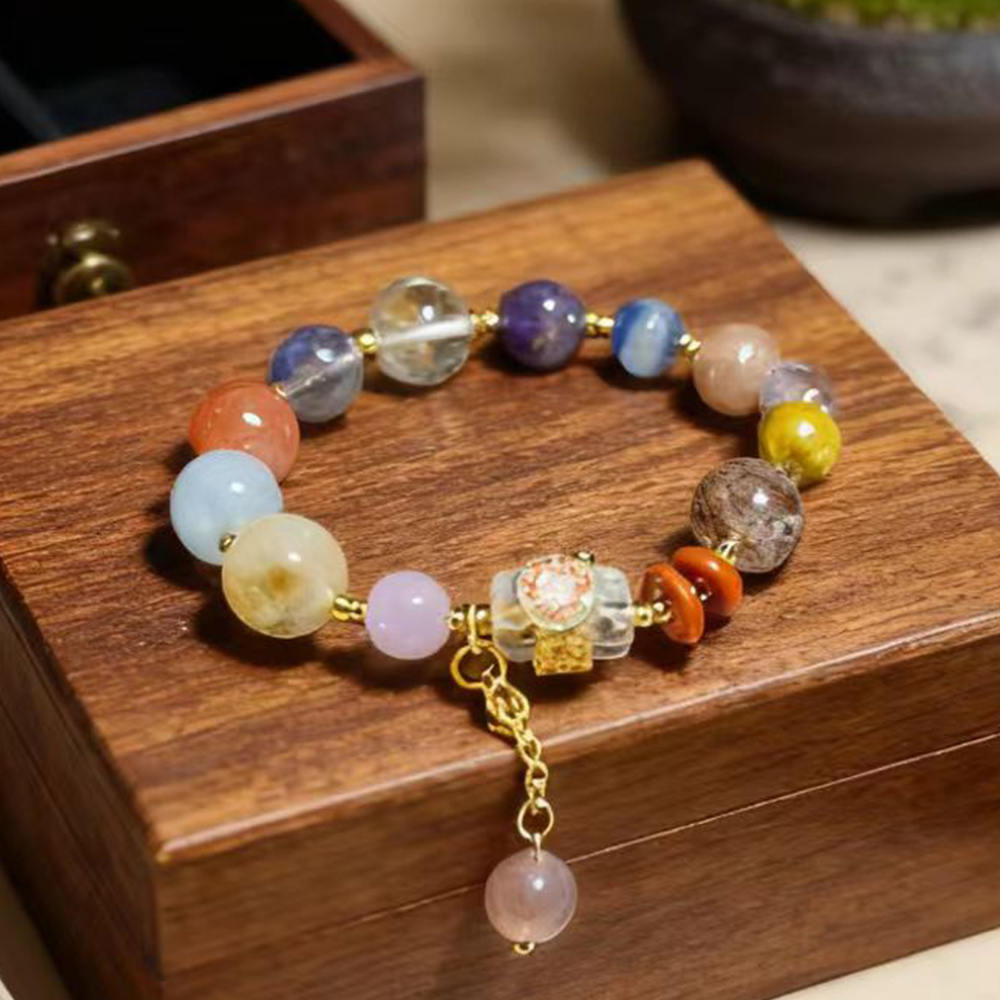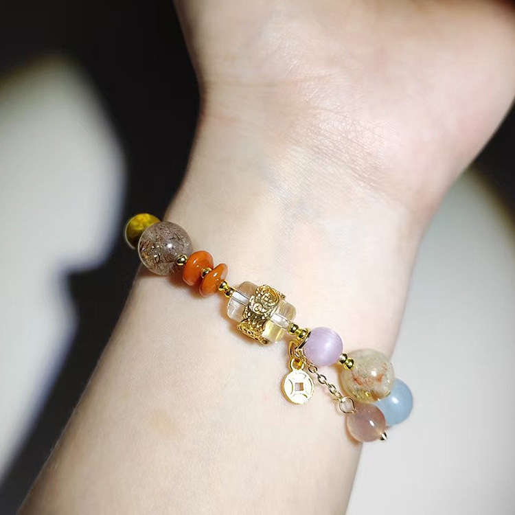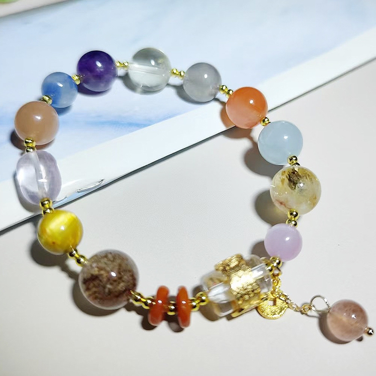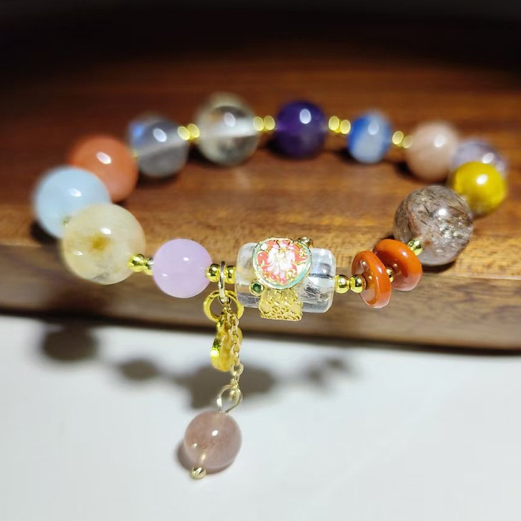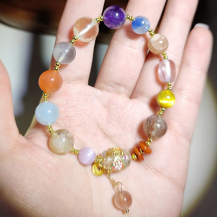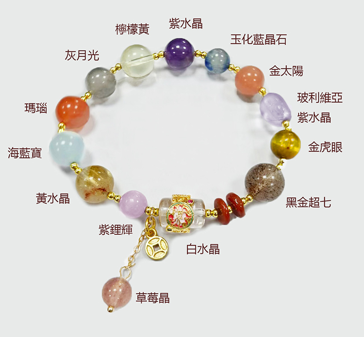 【Paiya 派亞】國風天然單圈超七海藍寶紫水晶多寶水晶手串手鏈