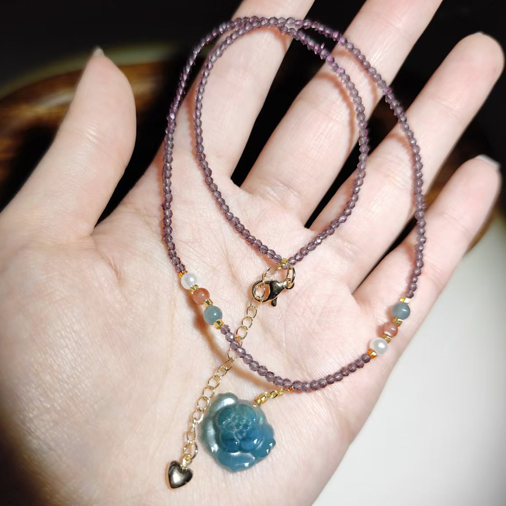 【Paiya 派亞】天然翡翠A貨藍水立體蓮花項鏈