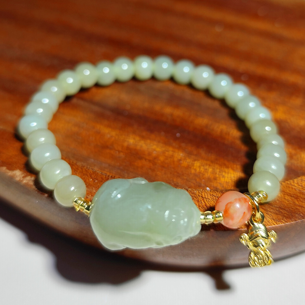 【Paiya 派亞】天然6mm晴水和田玉貔貅手串