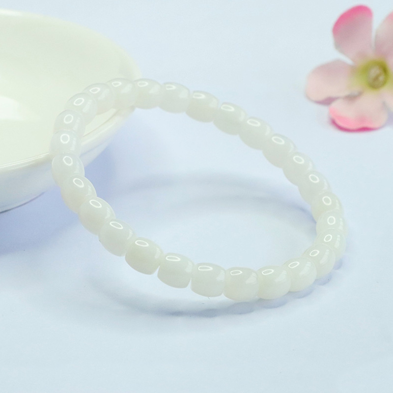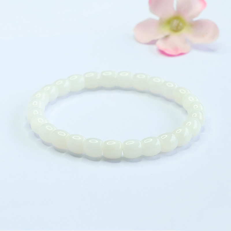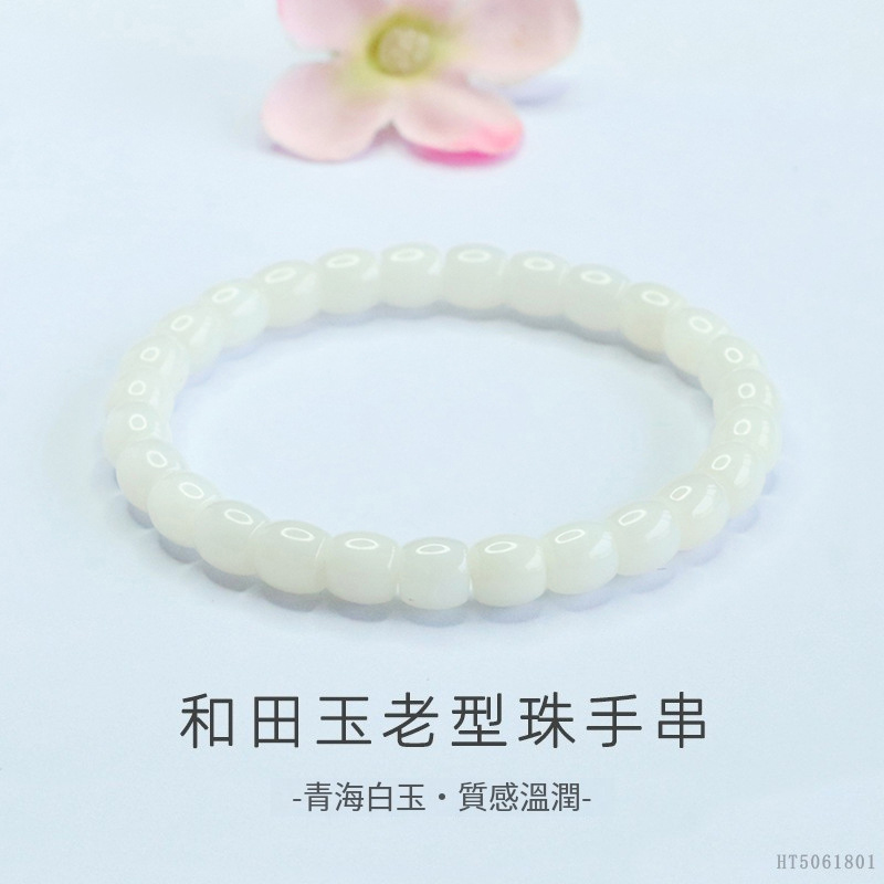 【Paiya 派亞】天然和田玉老型珠手串青海料白玉手鏈