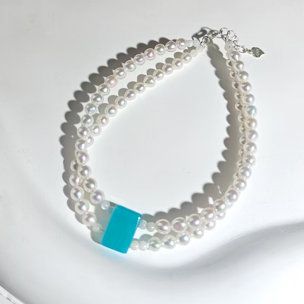 【Paiya 派亞】S925銀雙層3.7MM淡水珍珠天河石手串手鏈