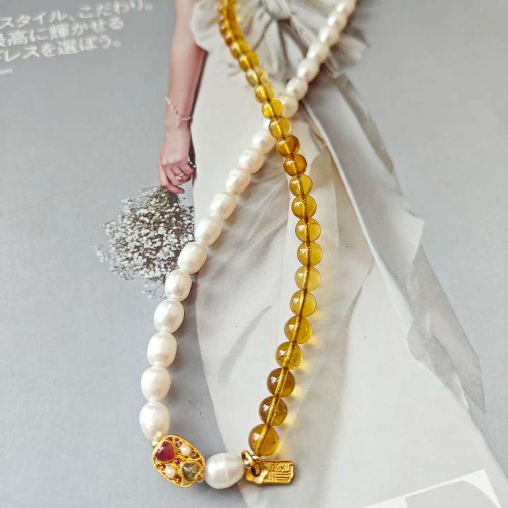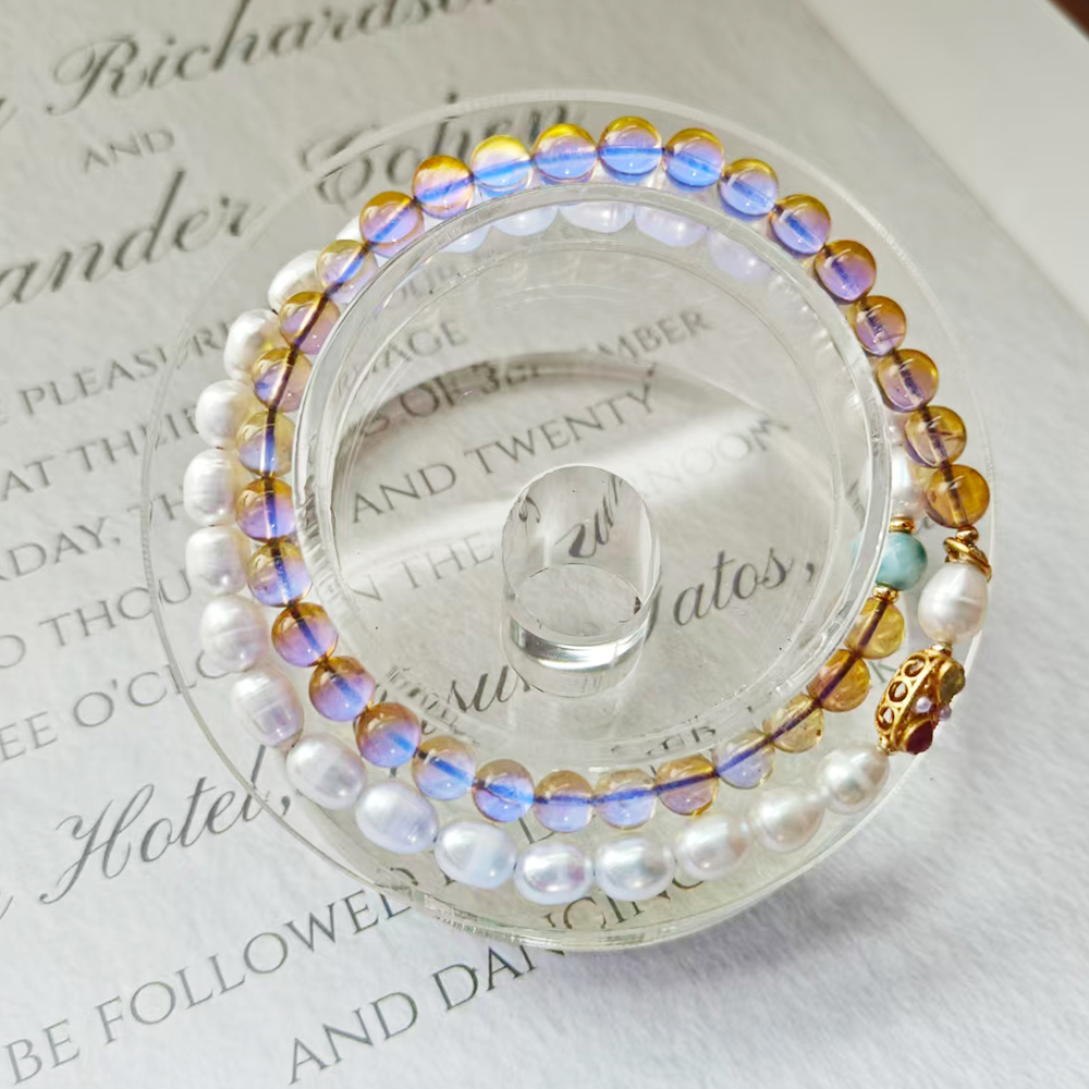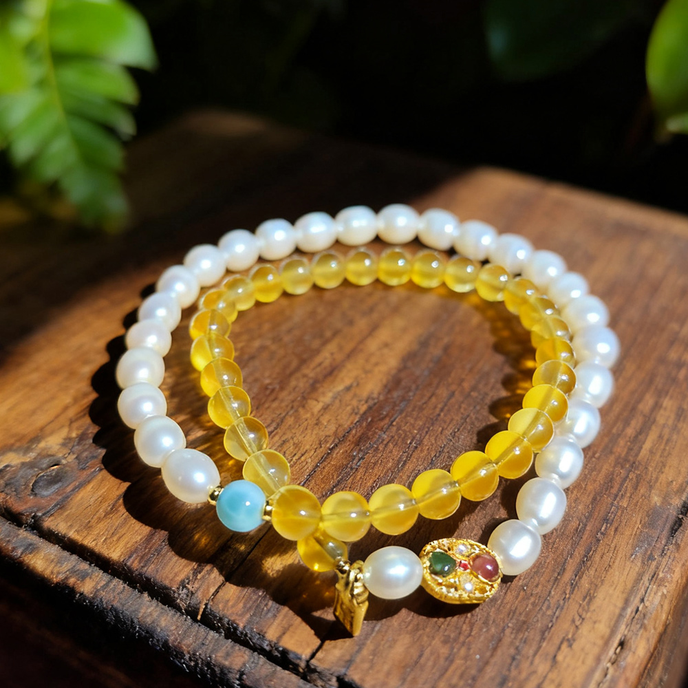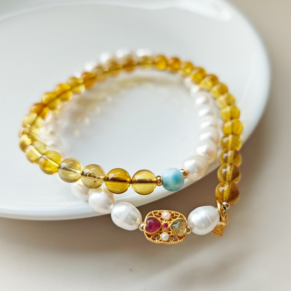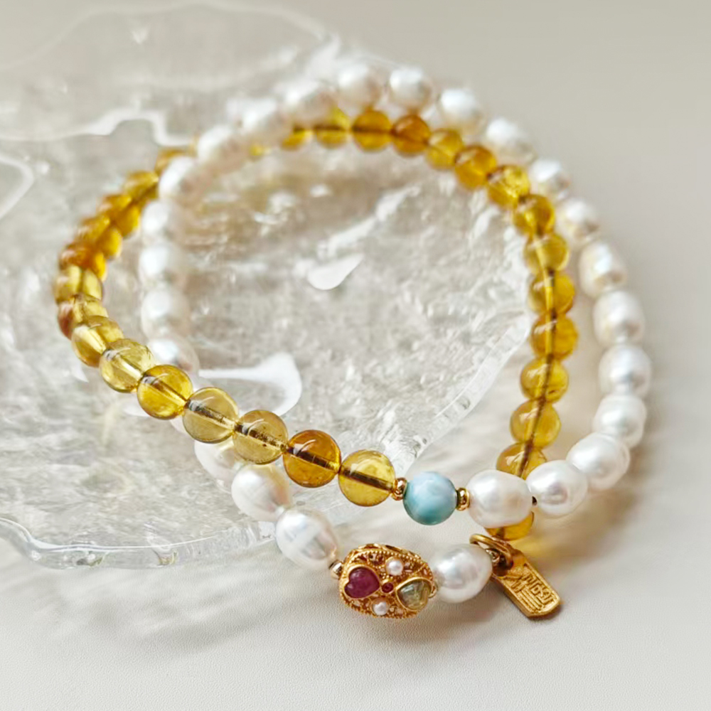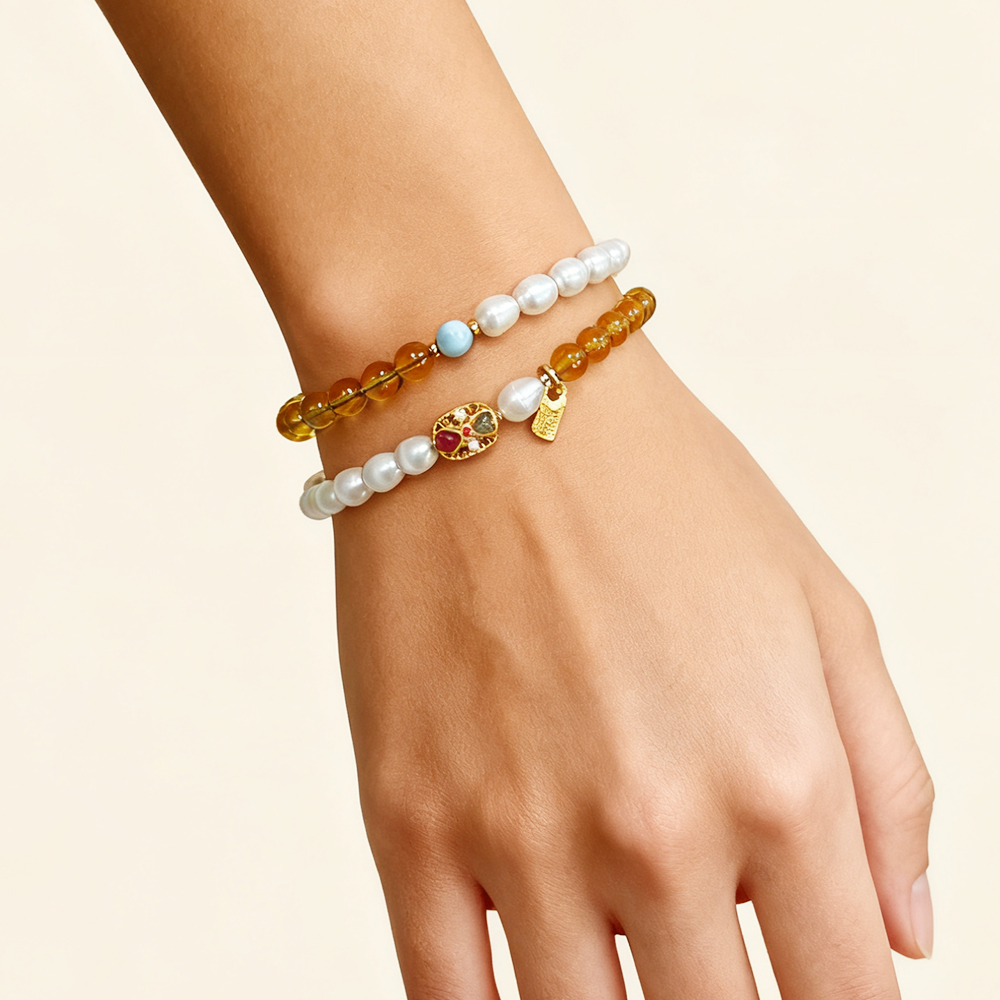 【Paiya 派亞】5.7MM淡水珍珠藍珀雙圈手串手鏈