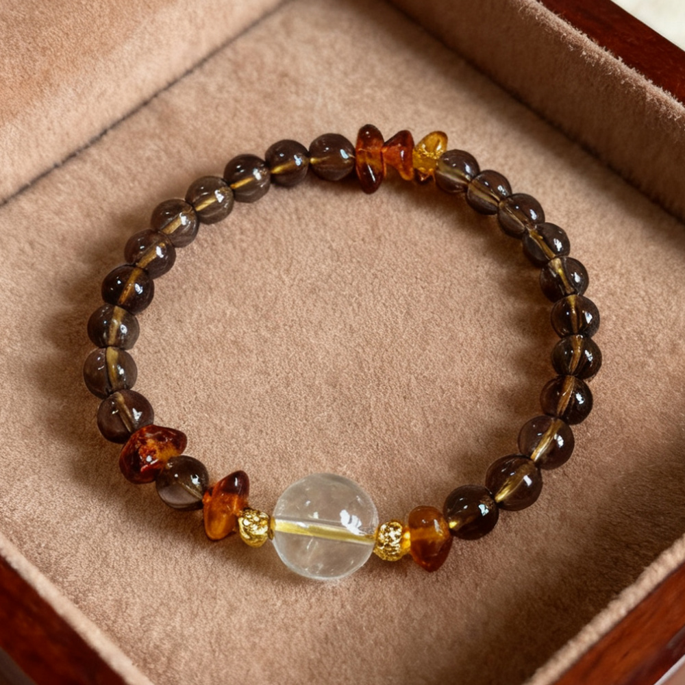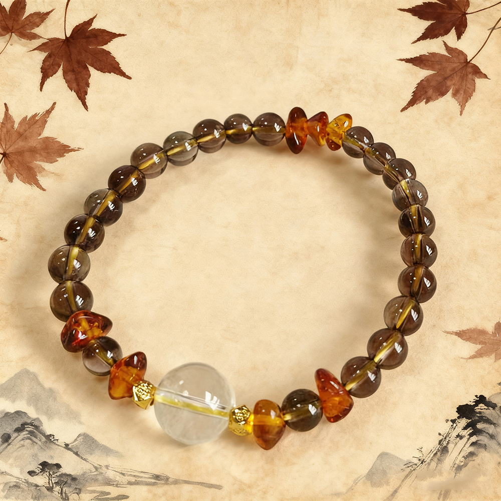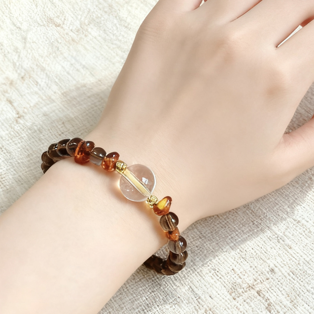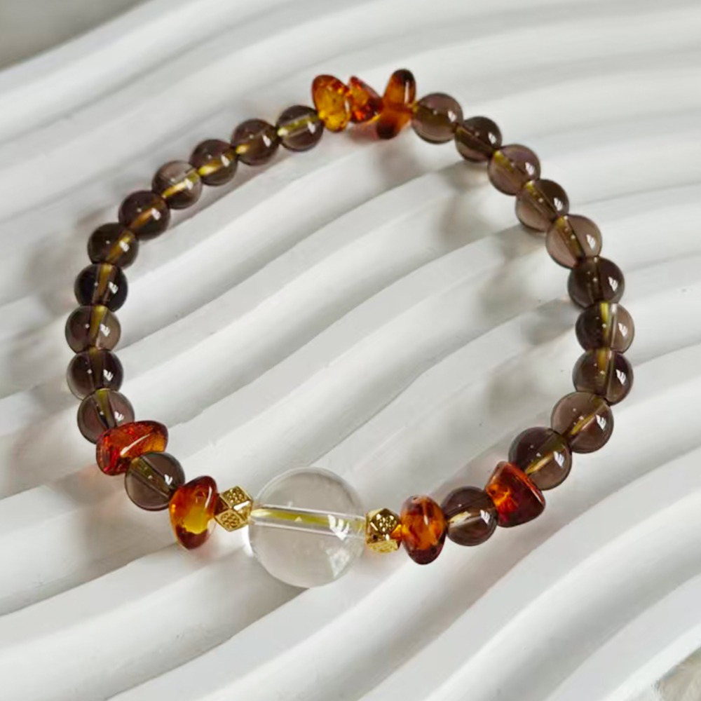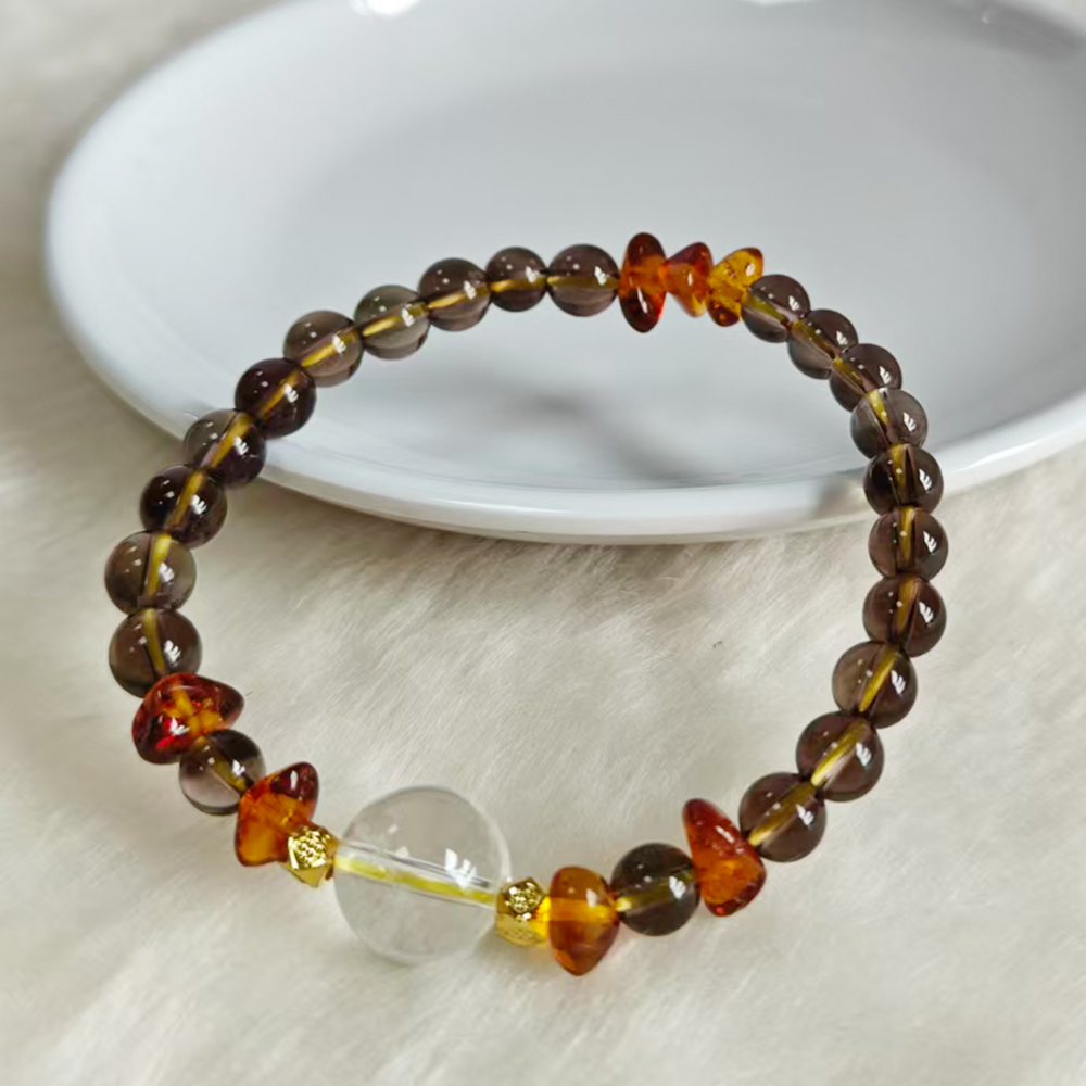 【Paiya 派亞】原創設計天然12MM白水晶+6MM茶水晶+花珀隨行手串手鍊