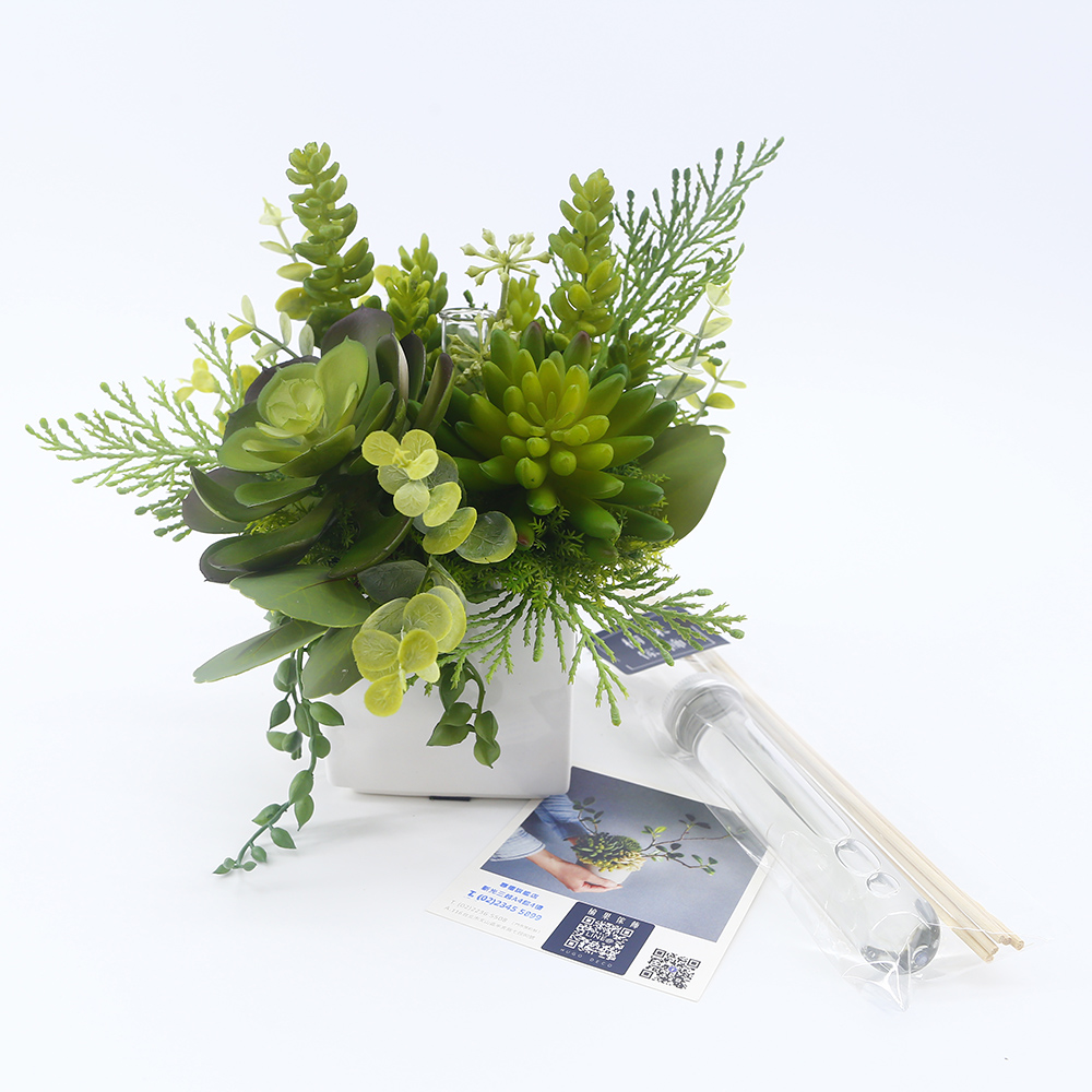 【HUGO DECO 榆果傢飾】小寶石蓮多肉香氛植栽(擬真植物/人造盆栽/綠化/佈置/禮物)