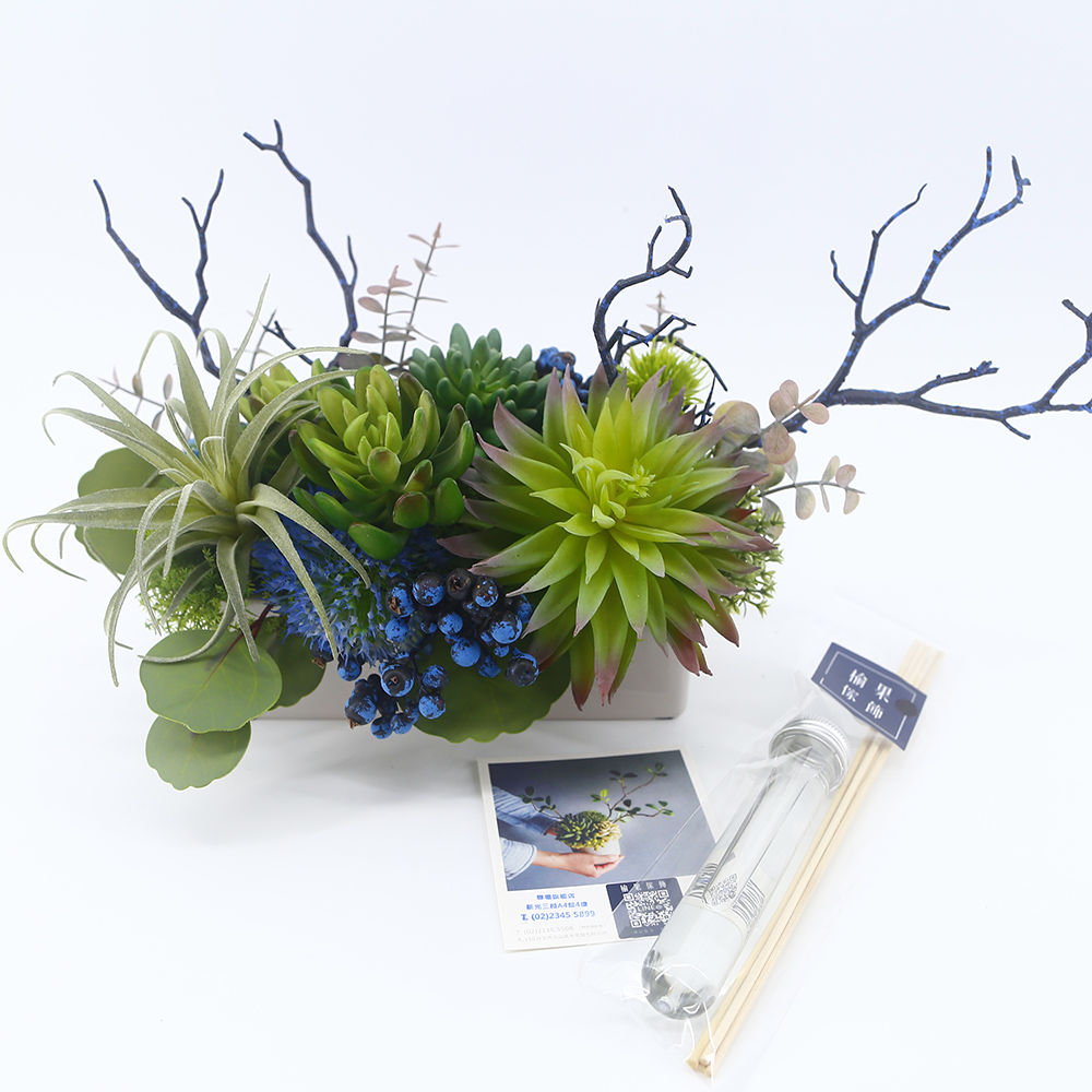 【HUGO DECO 榆果傢飾】藍樹枝空氣鳳梨香氛植物(擬真植物/人造盆栽/綠化/佈置/禮物)
