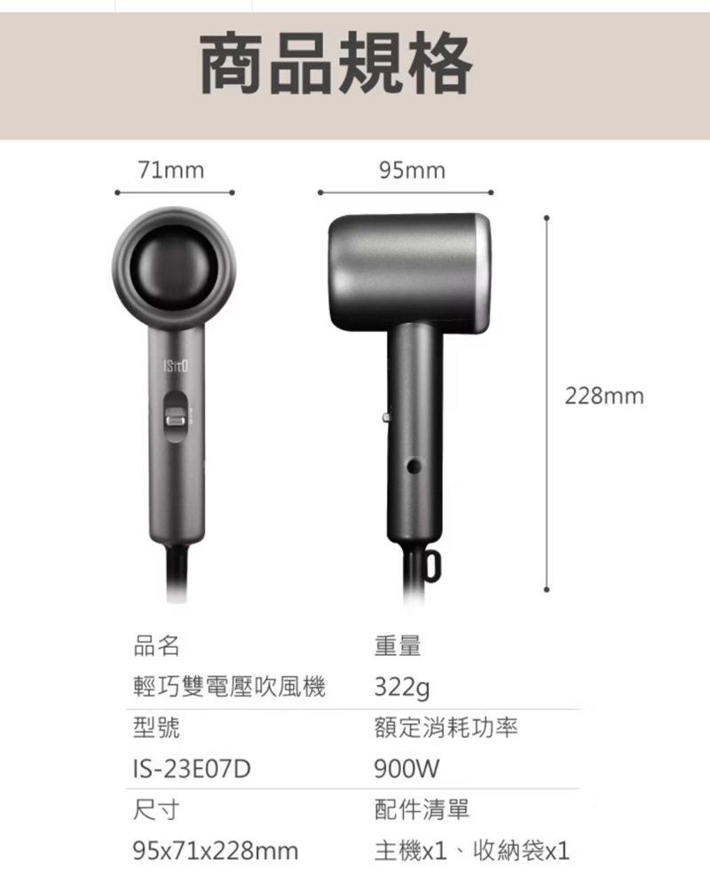 【ISITO】輕巧雙電壓吹風機 IS-23E07D