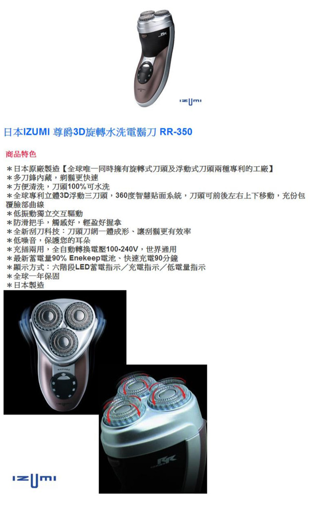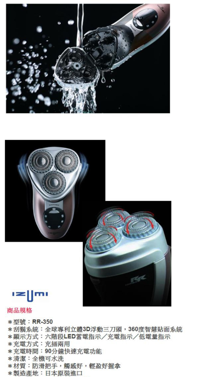 【IZUMI】尊爵3D旋轉水洗電鬍刀 RR-350 福利品出清!