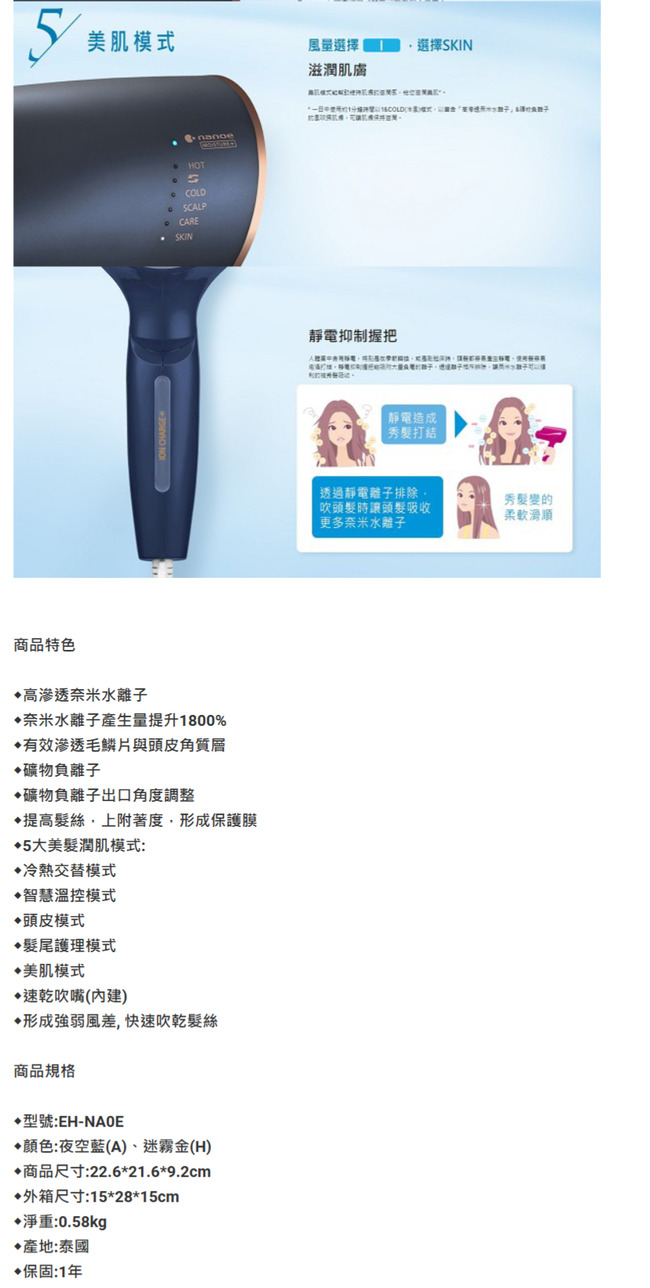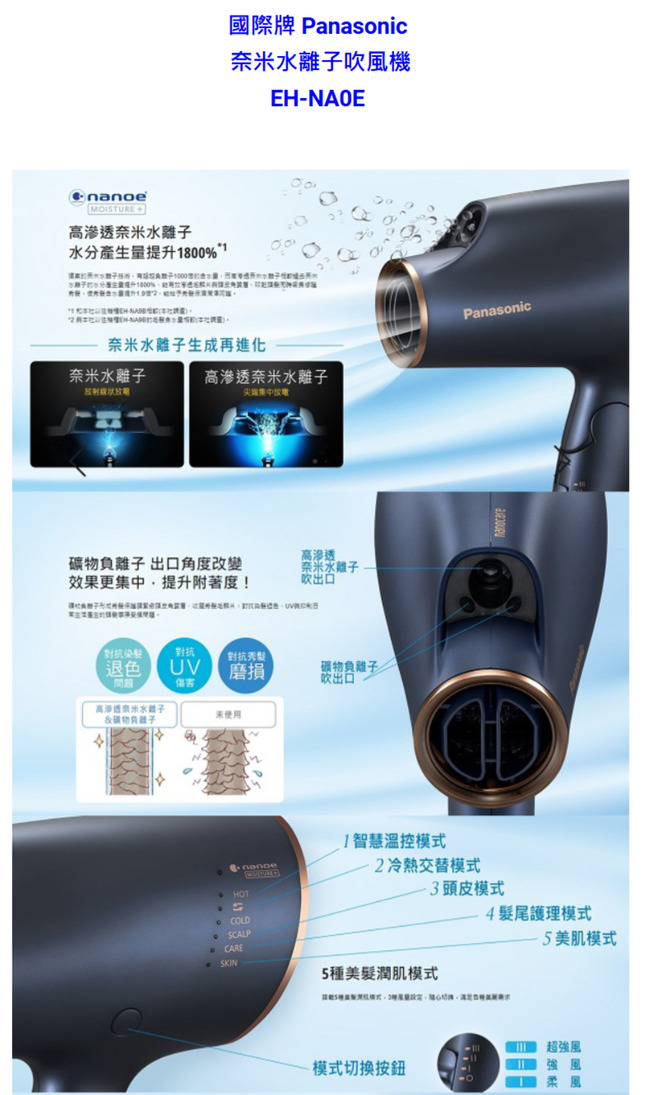 【Panasonic 國際牌】展示出清 奈米水離子吹風機 EH-NA0E