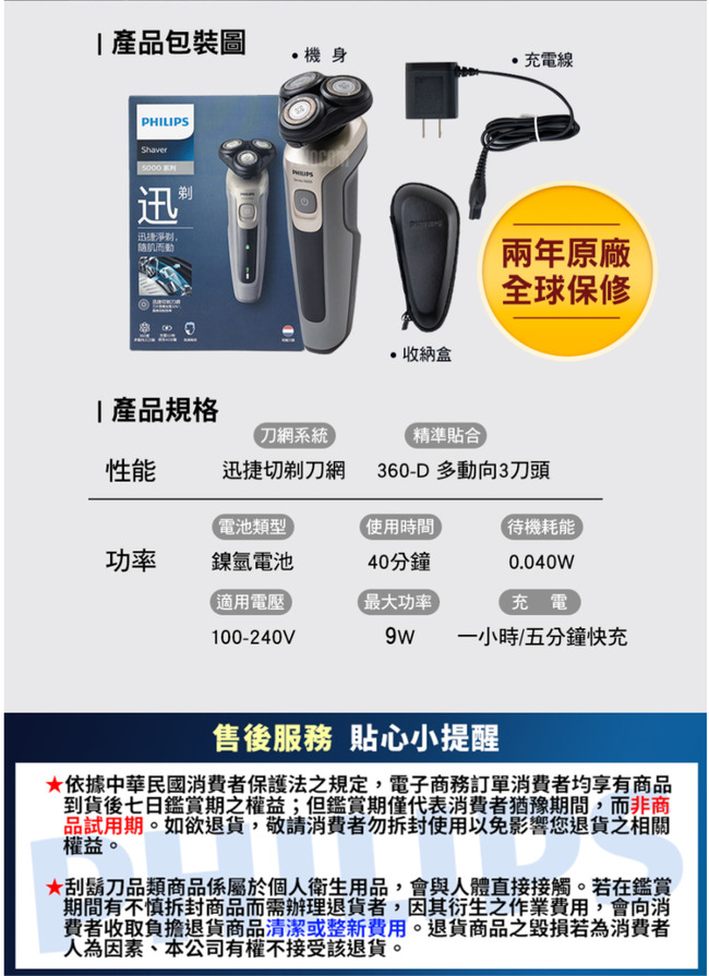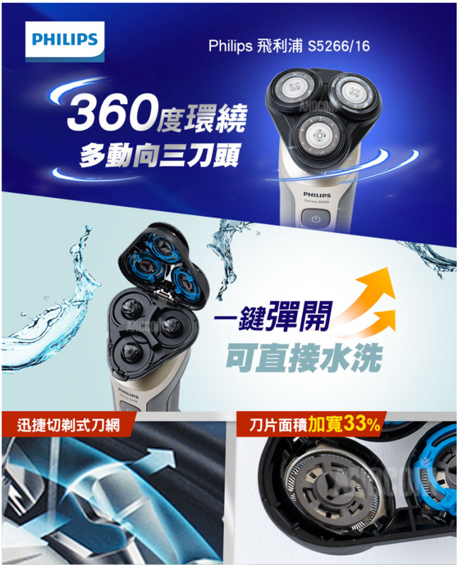 【Philips 飛利浦】 5系列-多動向三刀頭電鬍刀S5266