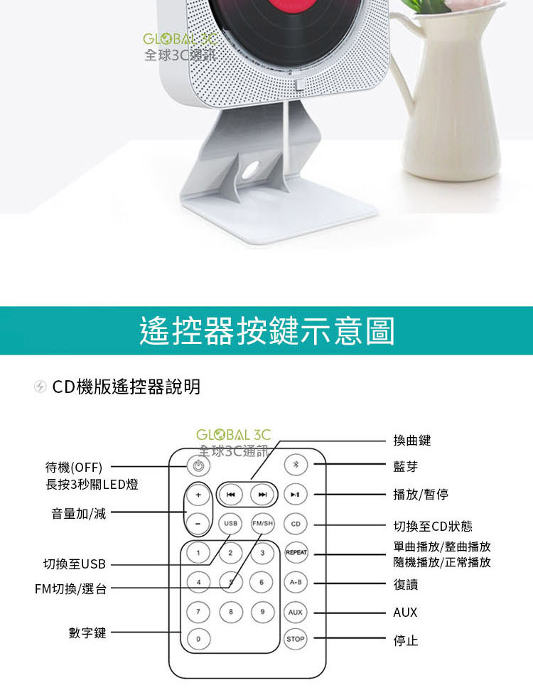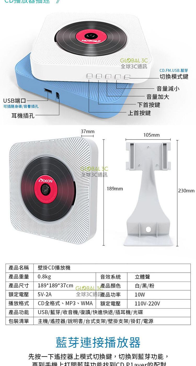CD播放器 可壁掛可直立 支援CD藍芽USBFM收音機附遙控 聽音樂 晶片升級版