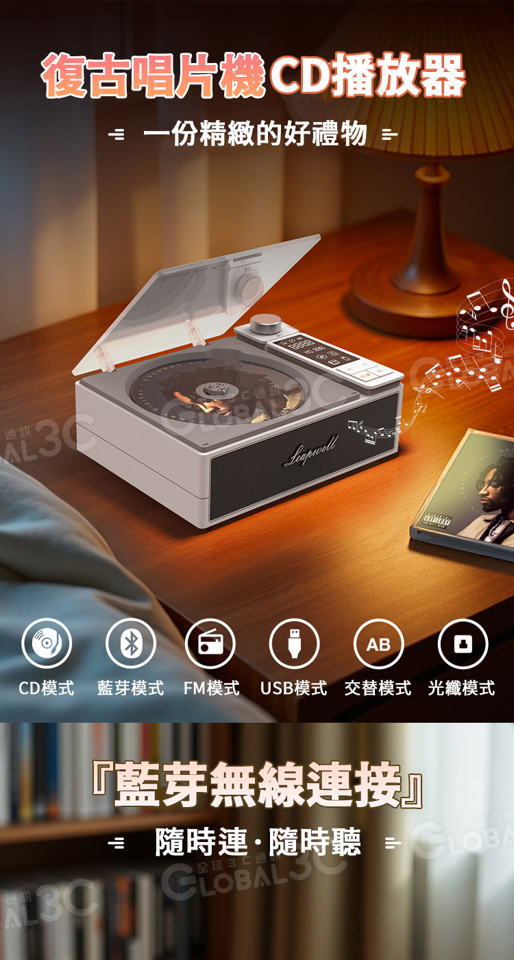 播放模式:CD/藍芽/FM廣播/USB