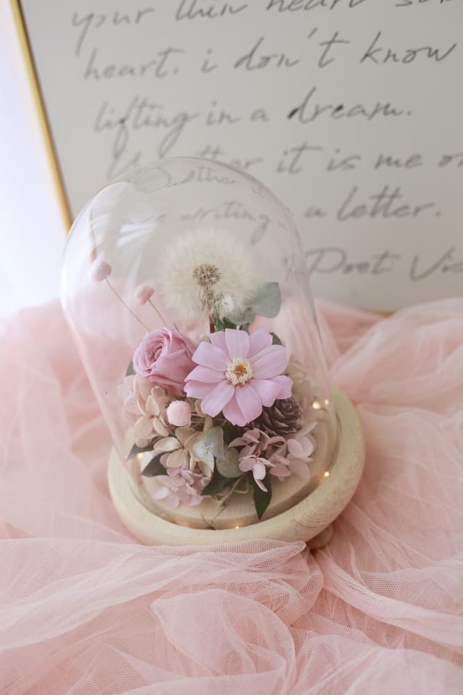 2.乾燥花本身脆弱,開箱難免會發現少許花屑掉落,超完美主義者請考慮仔細再下單