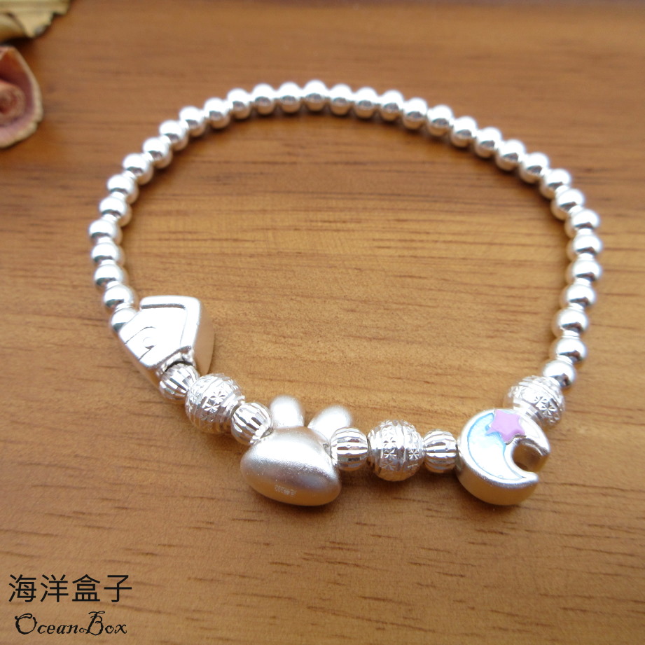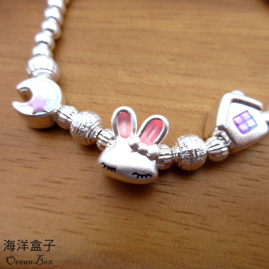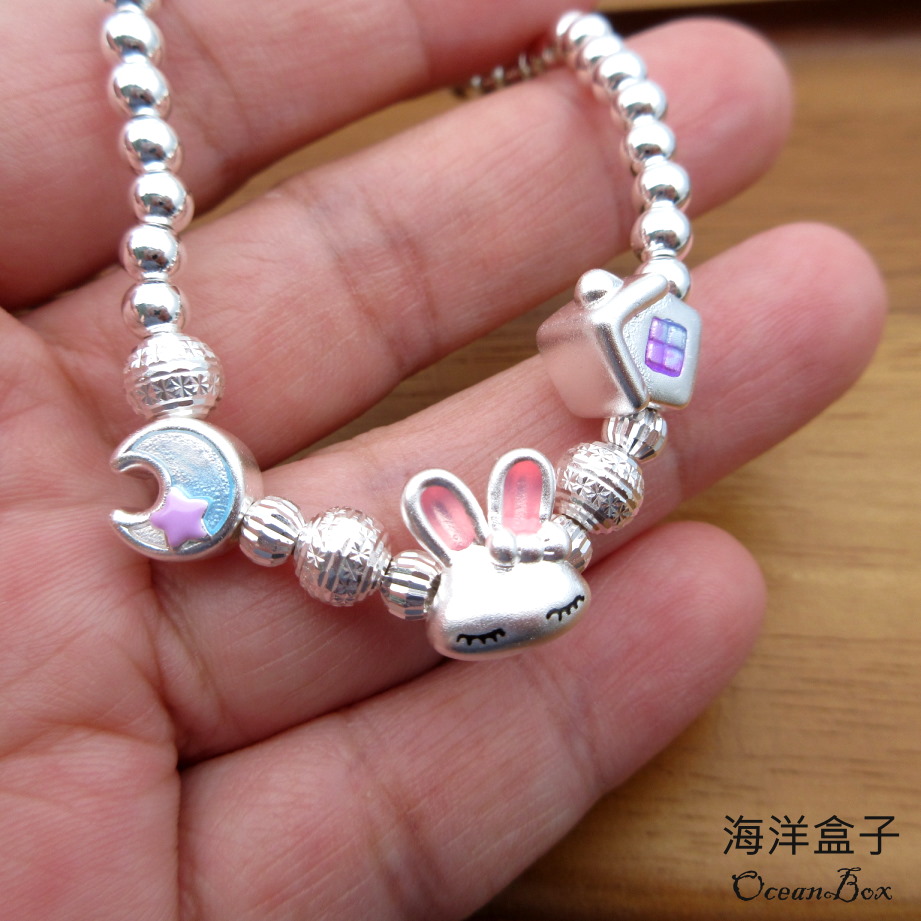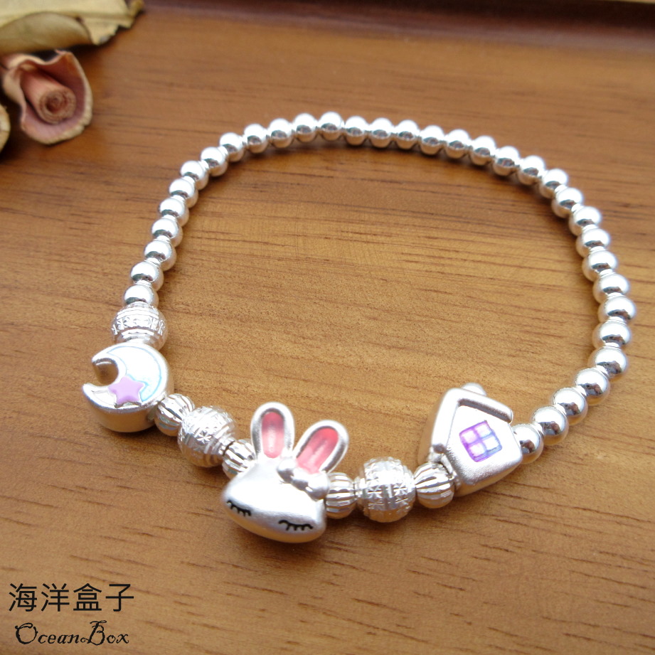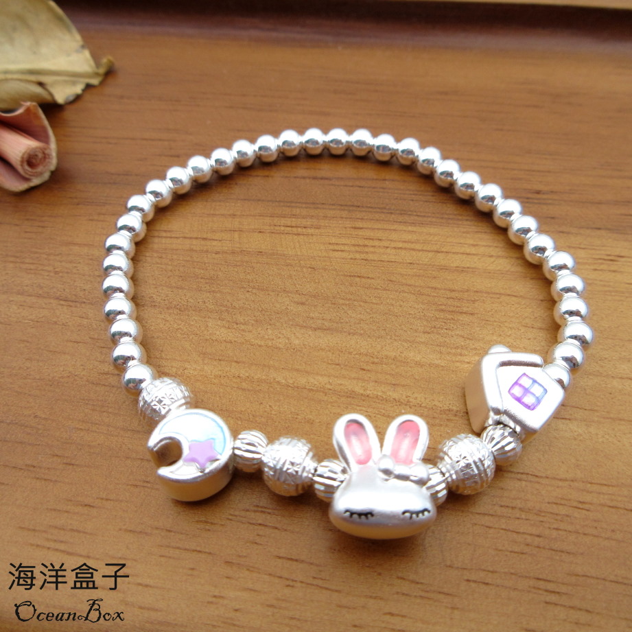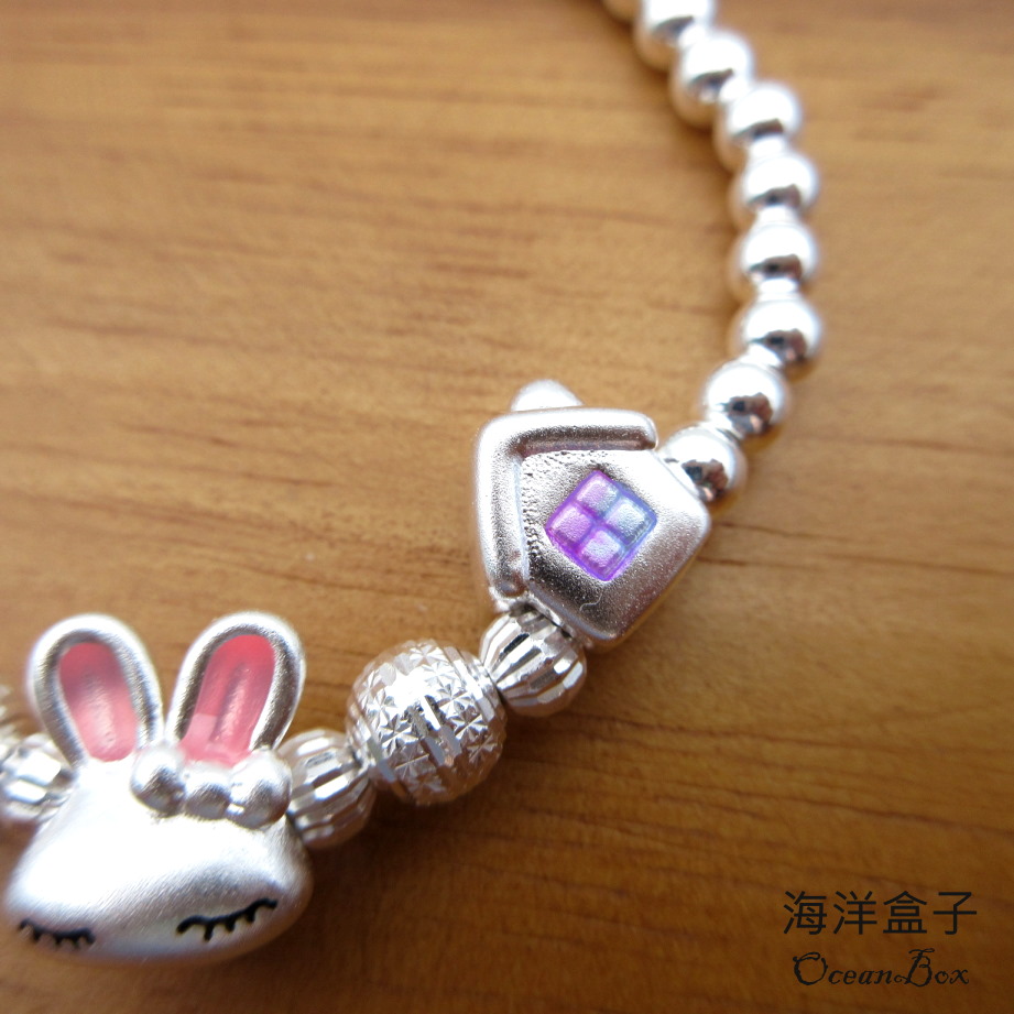 【海洋盒子】童趣小兔子光珠S999足銀純銀手鍊.彈性手圍(附贈禮盒.拭銀布)