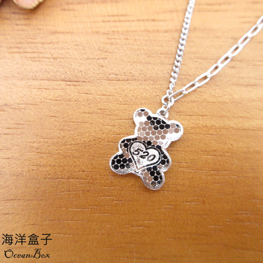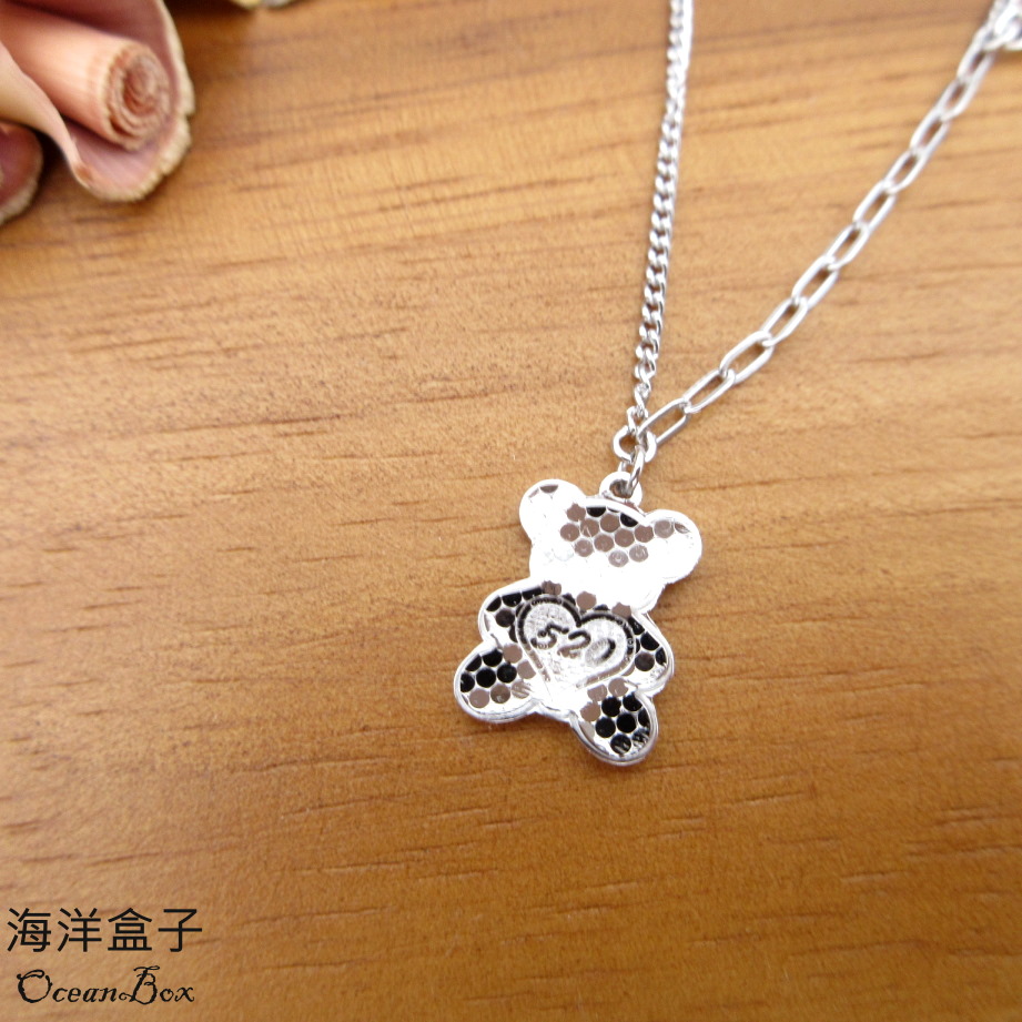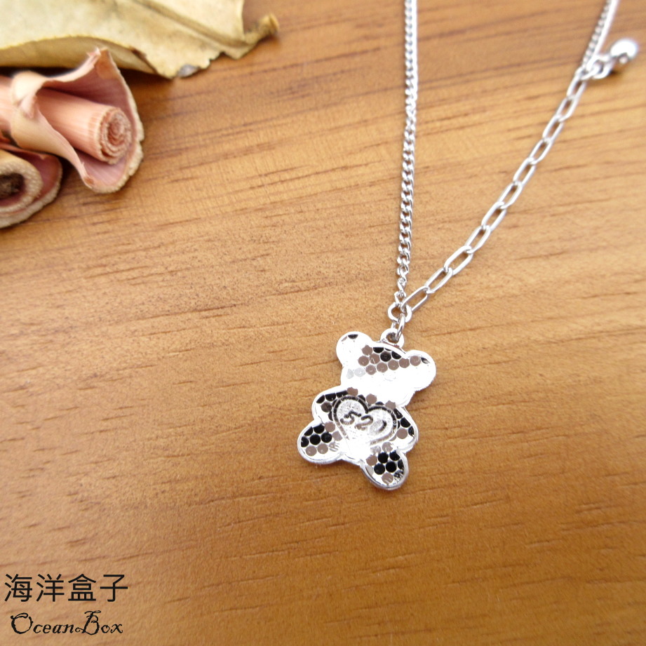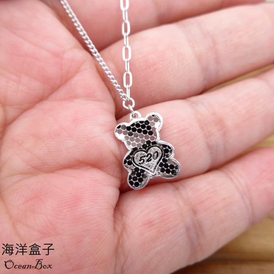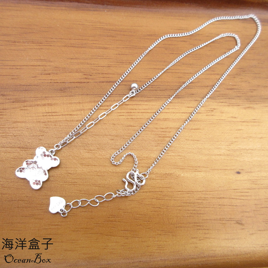 【海洋盒子】我愛你520閃亮碎冰小熊S999純銀項鍊.白金色.附贈禮盒(情人節禮物.聖誕禮物)