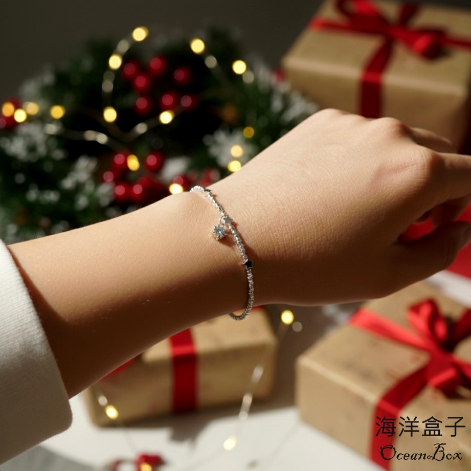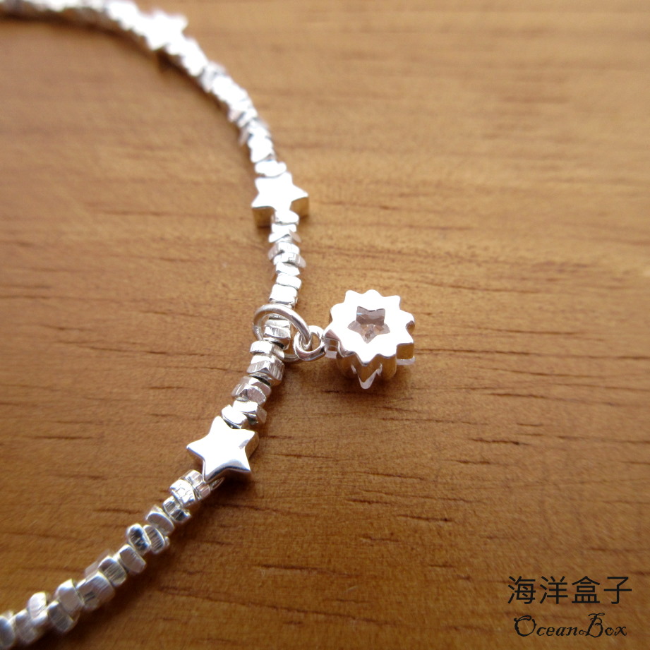 【海洋盒子】閃亮碎銀子星星S999足銀純銀手鍊.女用手鍊.聖誕禮物.交換禮物