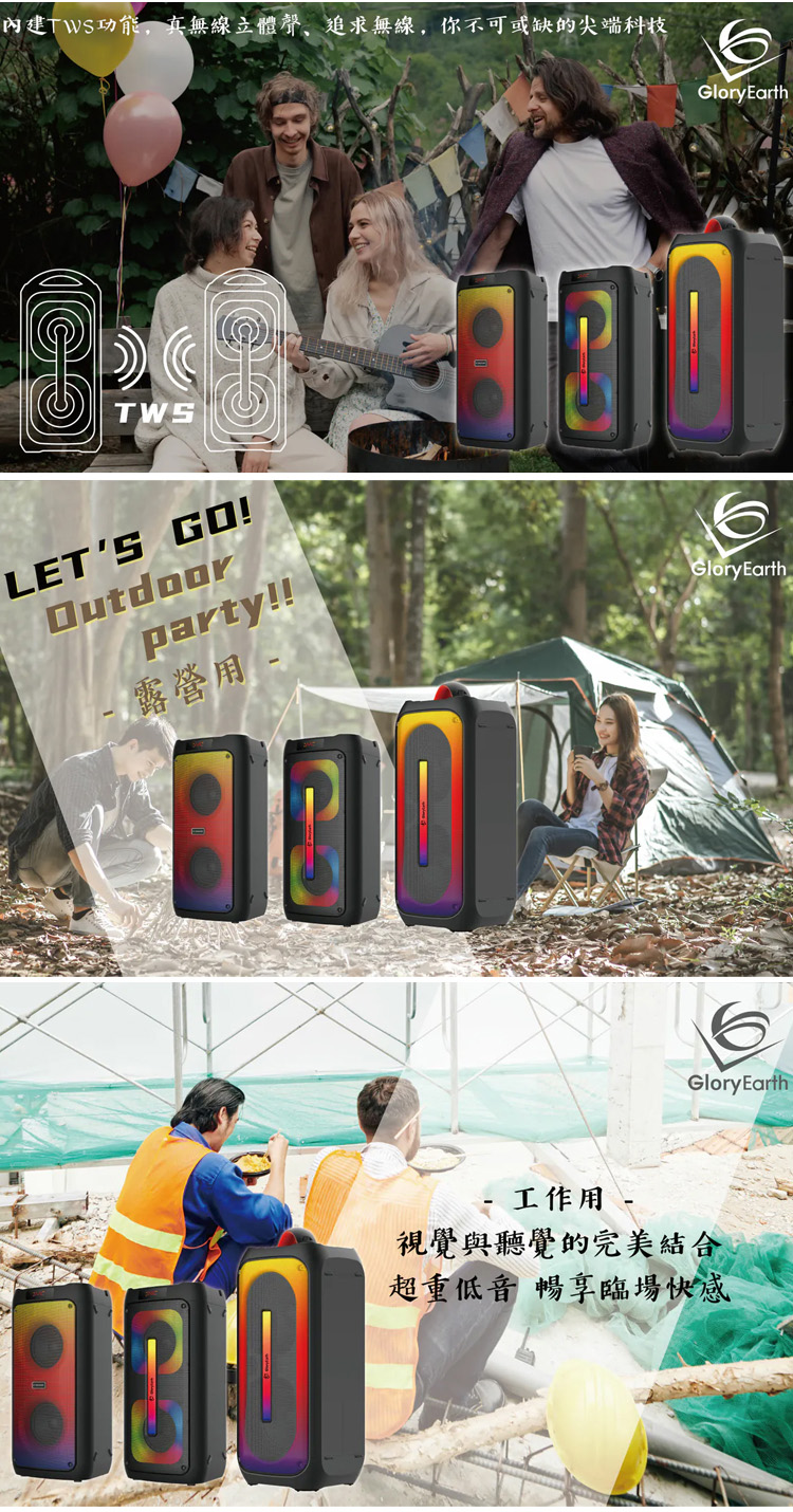 Gloryearth GT-388 多功能藍牙音箱(兩顆4吋喇叭單體/適用戶外多種場合)