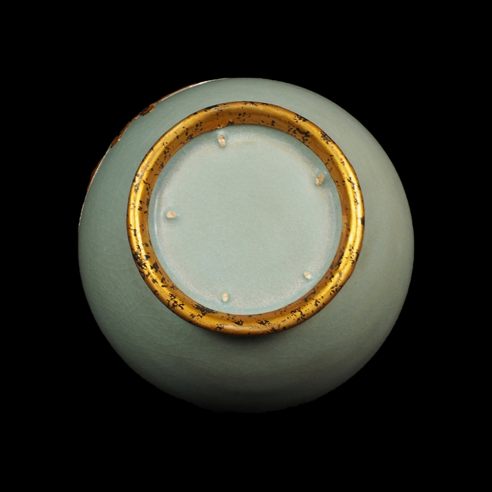 汝窯天青釉包金蓮紋弦紋瓶