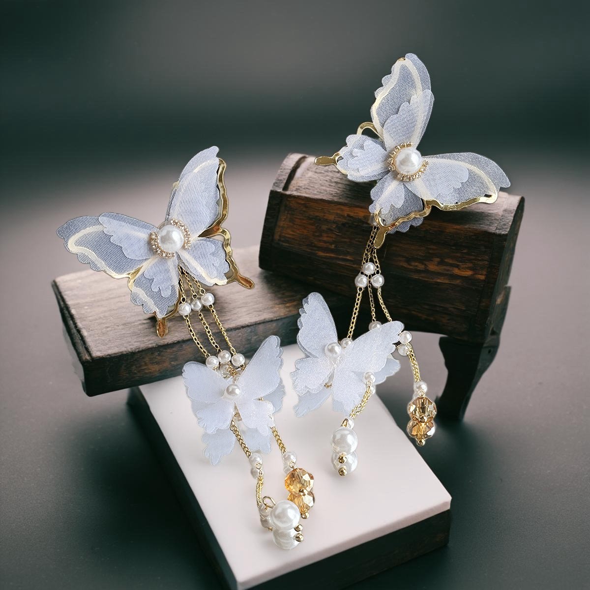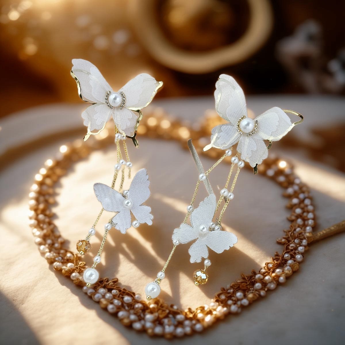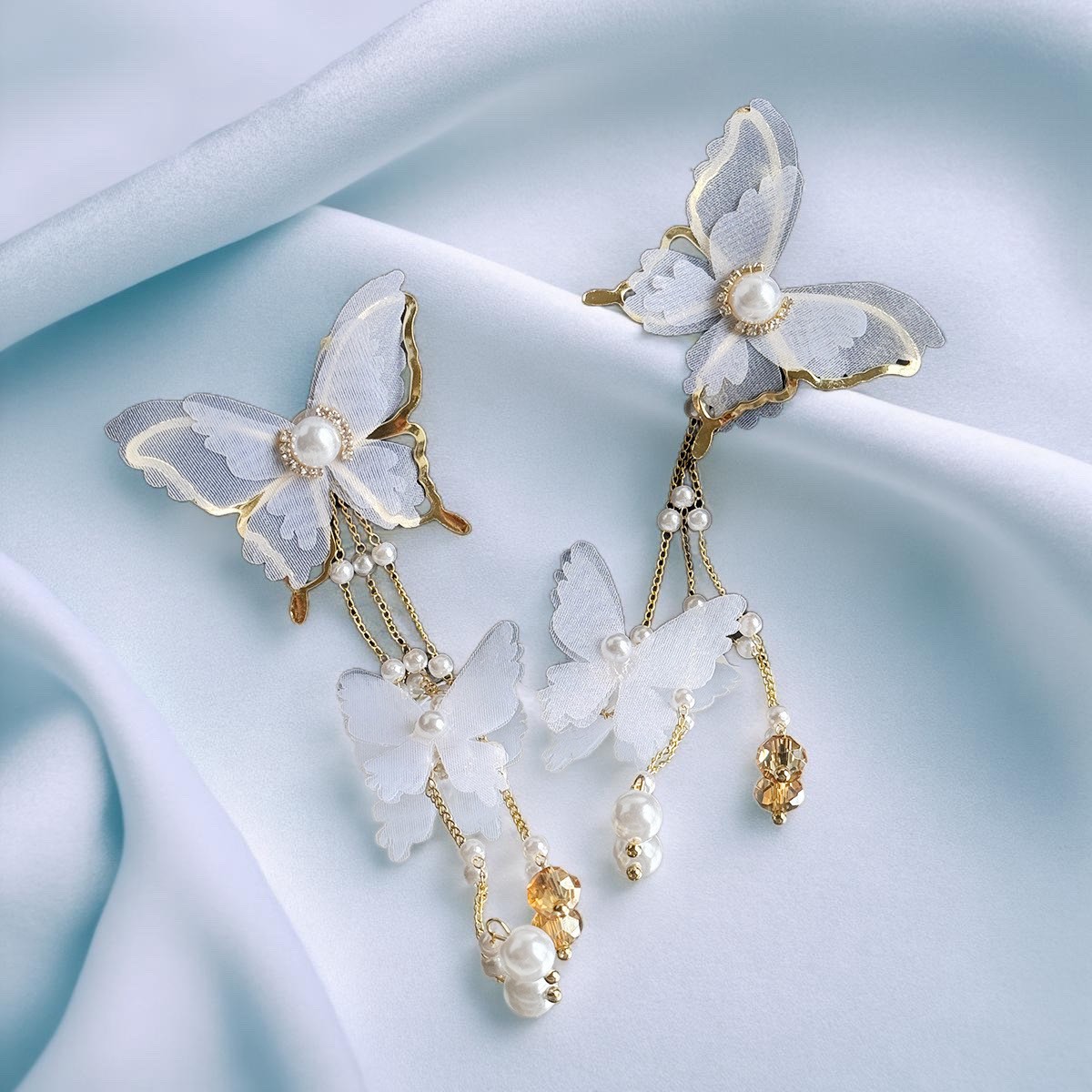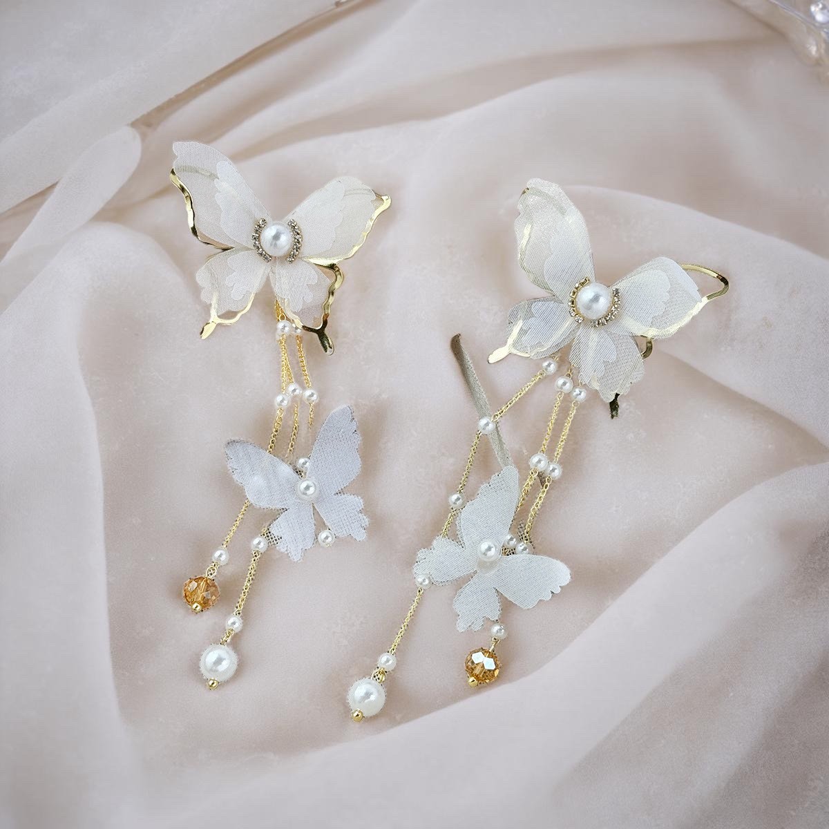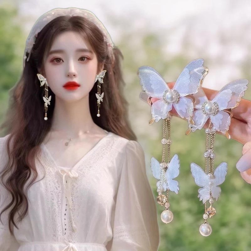 🌟商品名稱:BG416新娘超仙氣復古風耳環仙女白蝶白色蝴蝶耳環流蘇耳環超仙網紗蝴蝶耳環ins超仙個性耳飾蝴蝶鑲鑽珍珠耳環