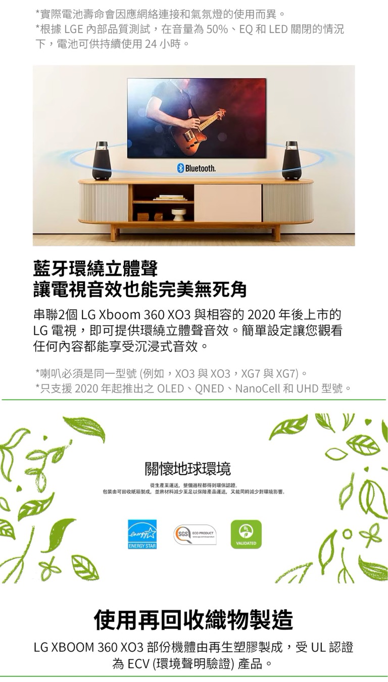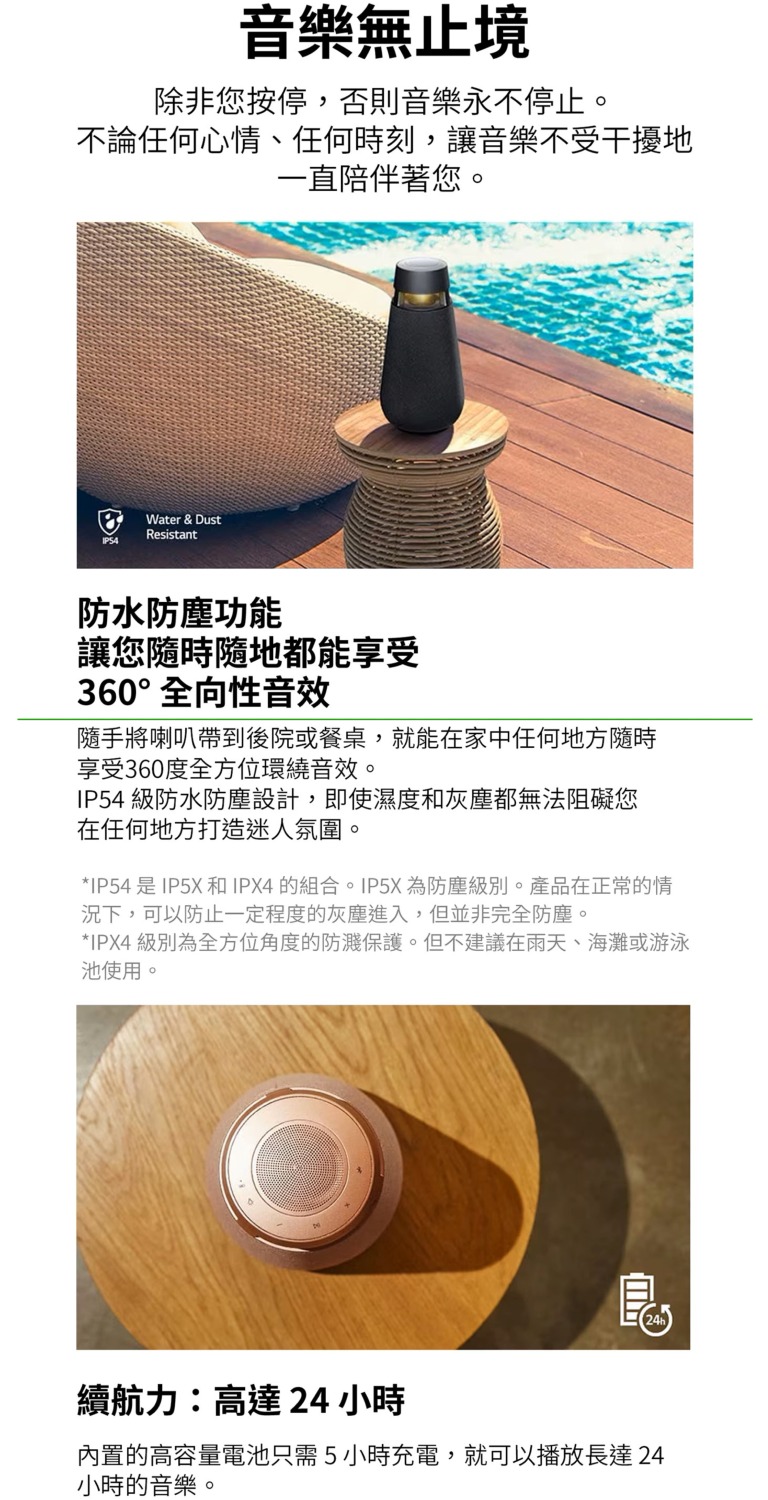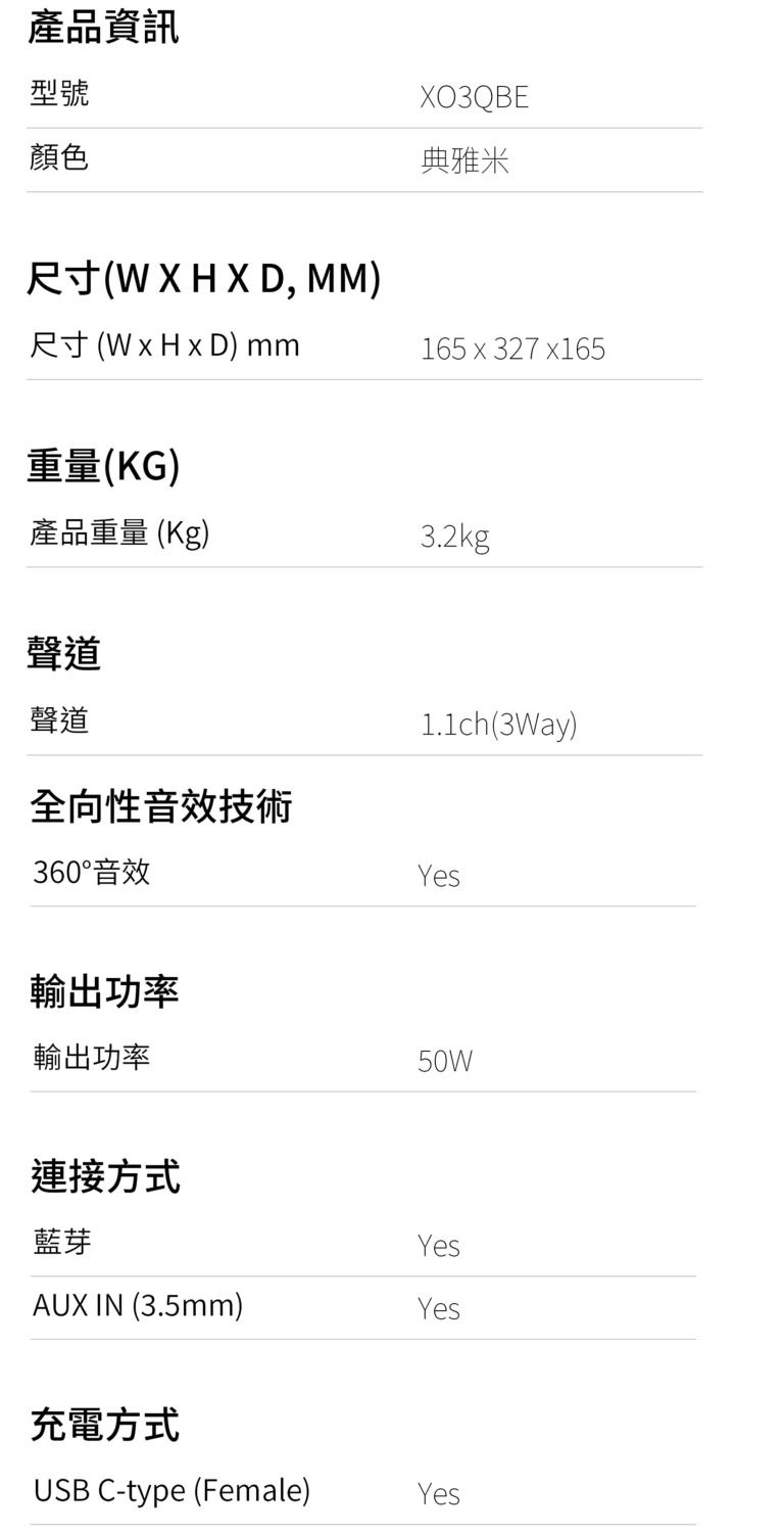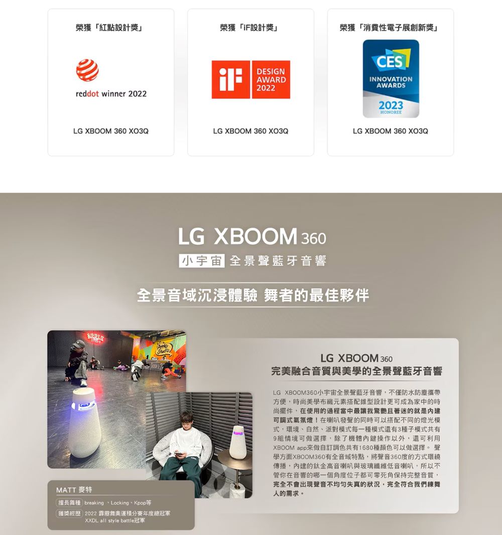 | 品名 | LG XBOOM 360˚ 小宇宙全景聲藍牙音響 典雅米 XO3QBE |