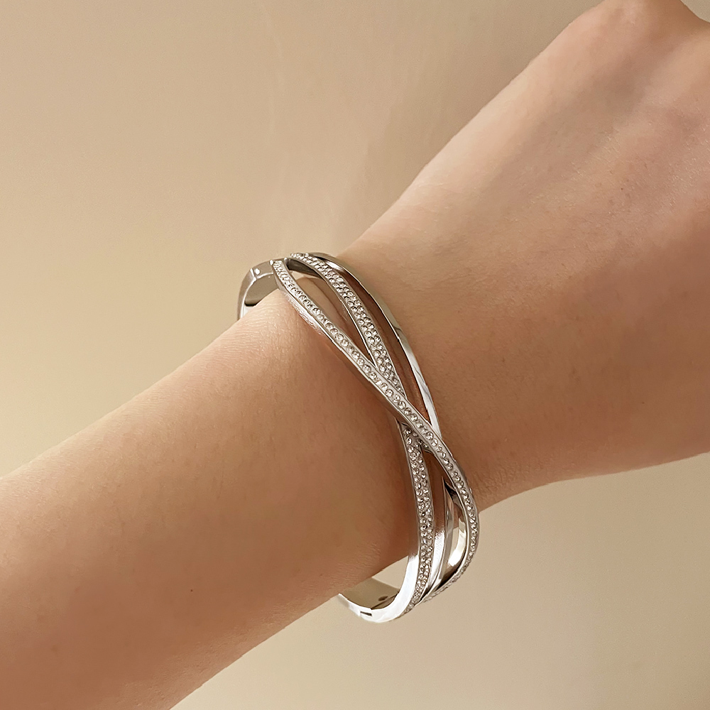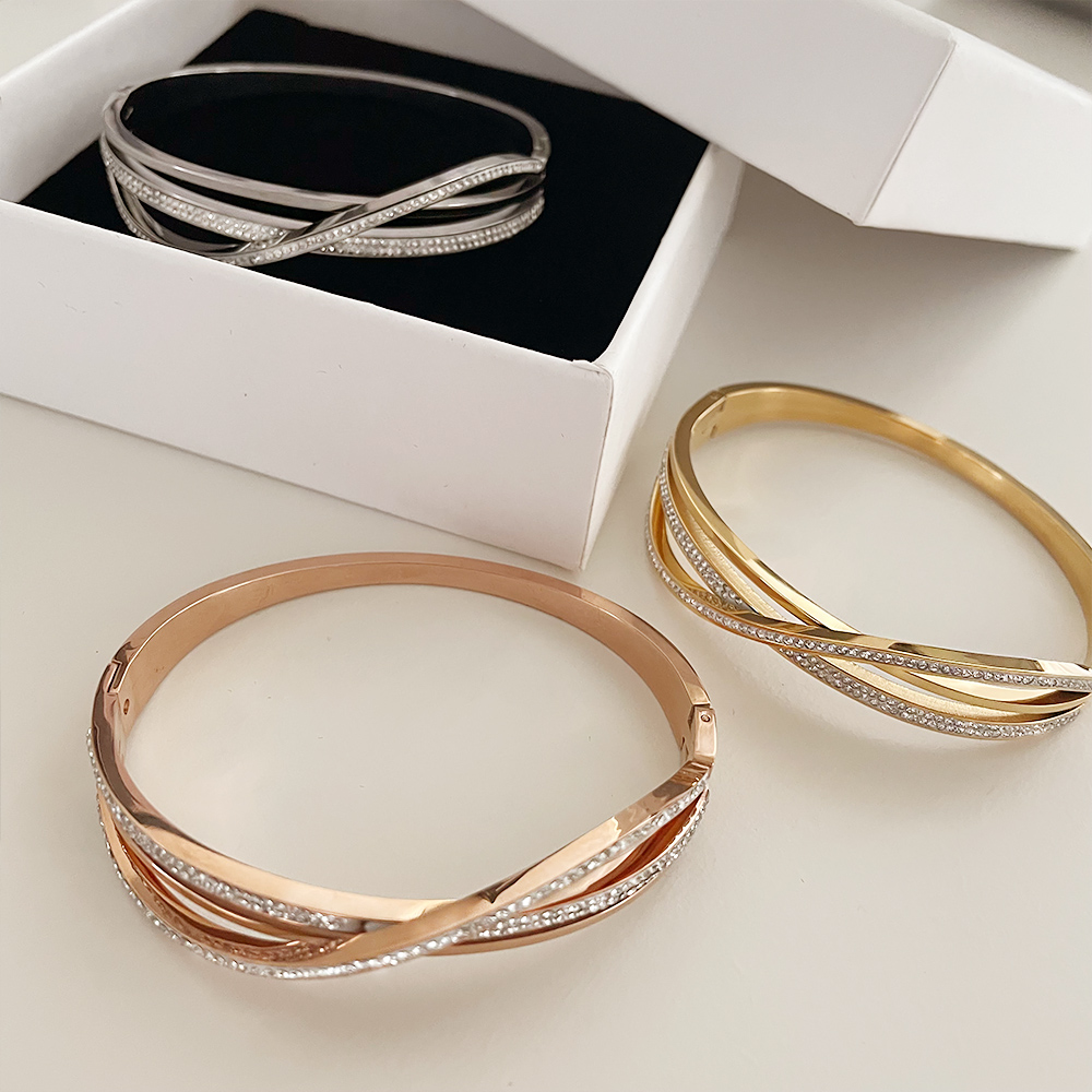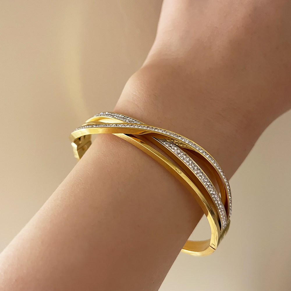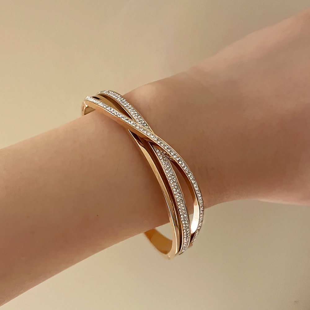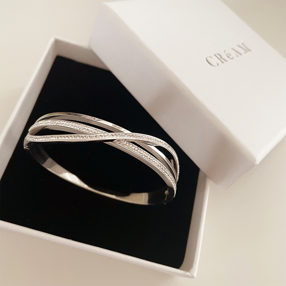 【CReAM】Twila閃耀奢華亮鑽水鑽交錯金銀色玫瑰金色女手環手鐲(生日 禮物 送禮 禮盒)