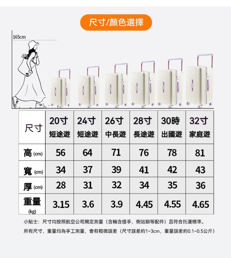 尺寸高度有包含輪子跟手把,手工測量,存在1-3CM的誤差哦~