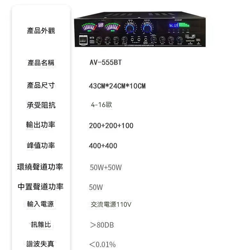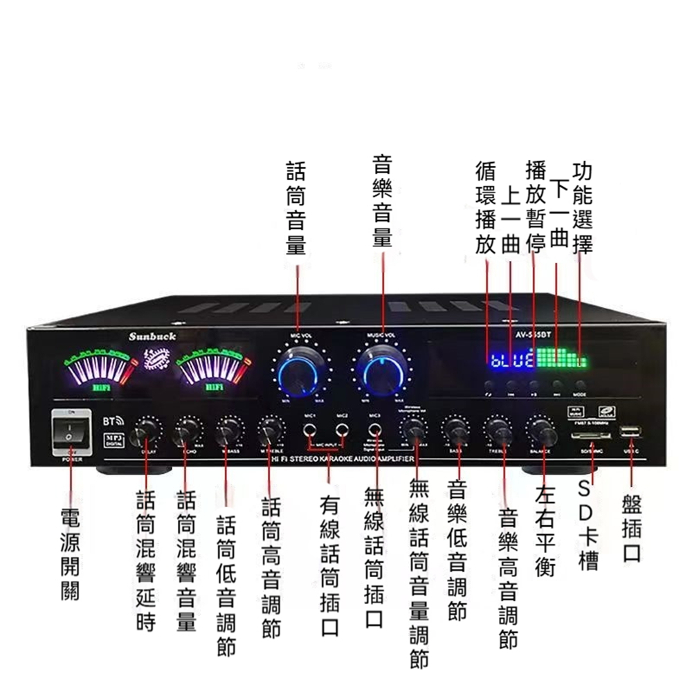 R.H獵戰 555BT家用藍牙功放機 大功率K歌音響 HIFI重低音設備