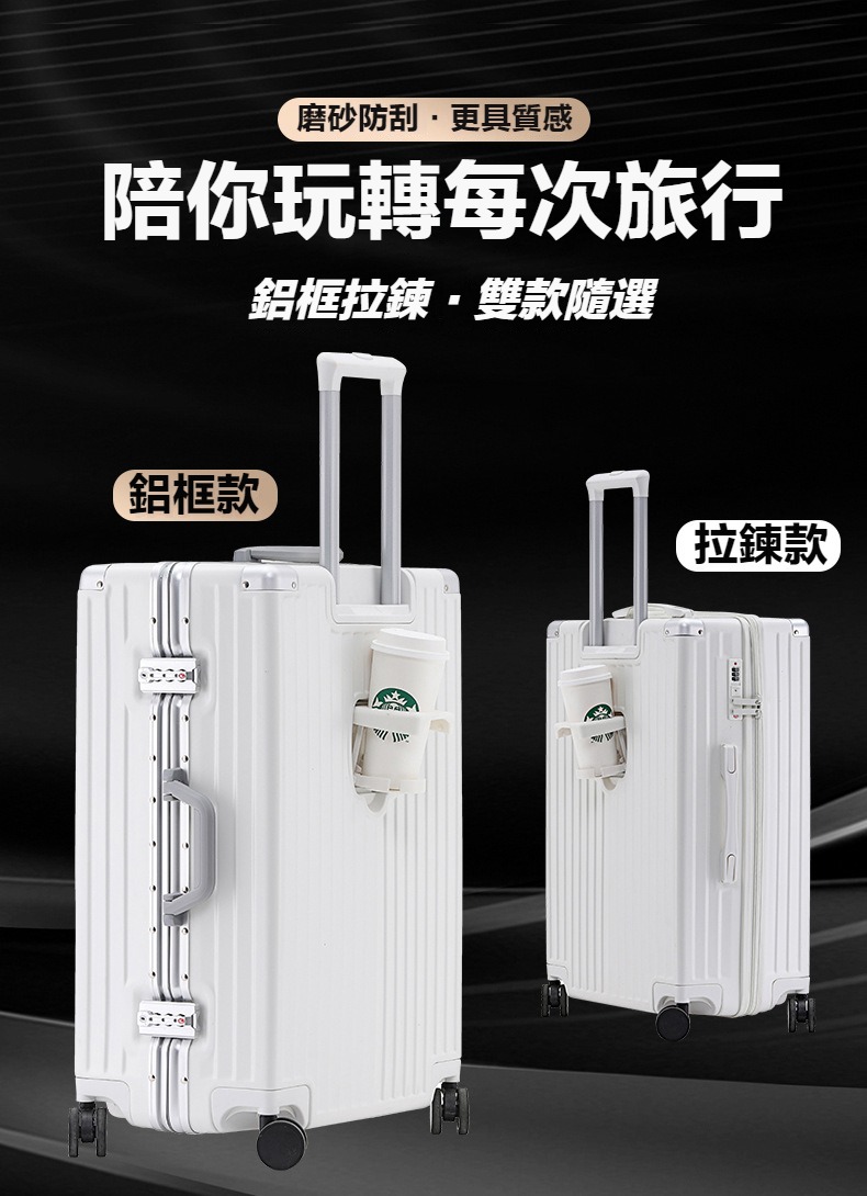 彈簧減震剎車輪/乾濕分離隔層/鋁合金防撞包角/TSA海關鎖