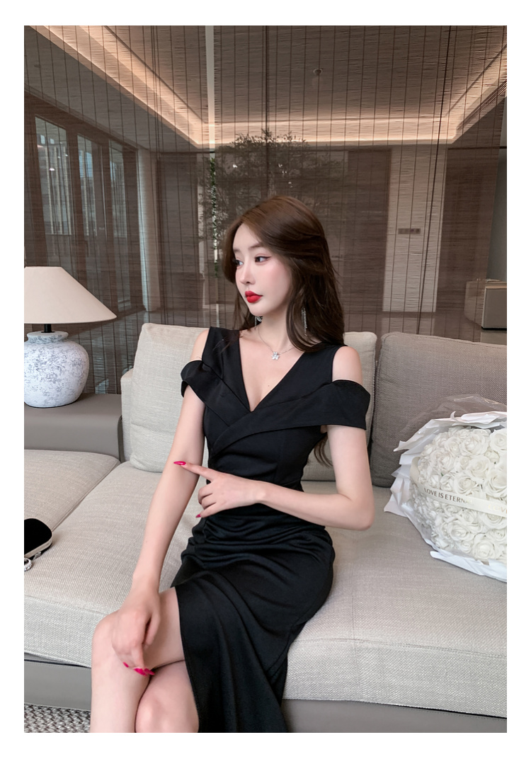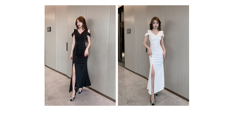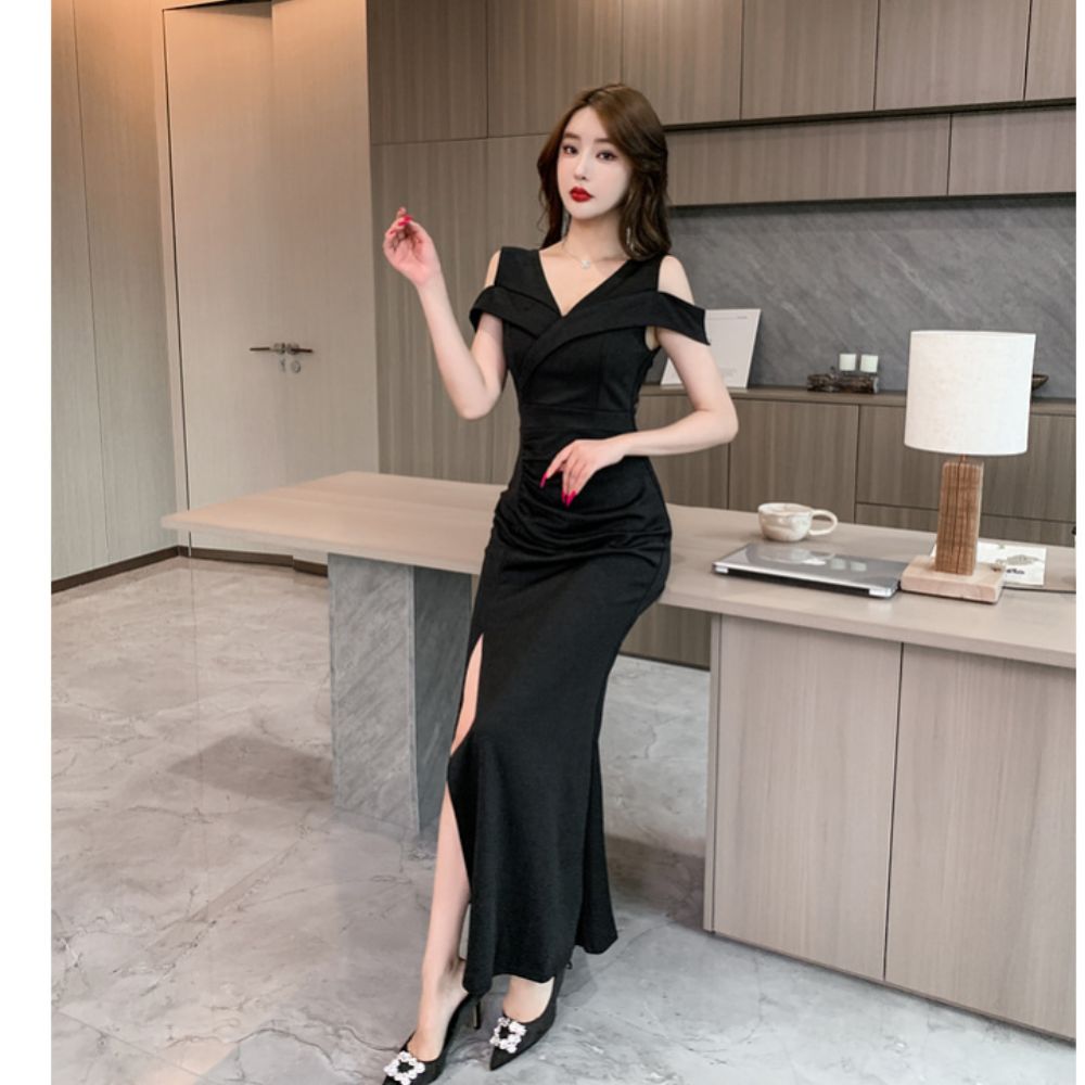 【臧女皇】新款夜店性感低胸露肩長裙晚禮服夜場過膝長洋裝禮儀主持人禮服宴會婚禮 生日派對約會裝扮