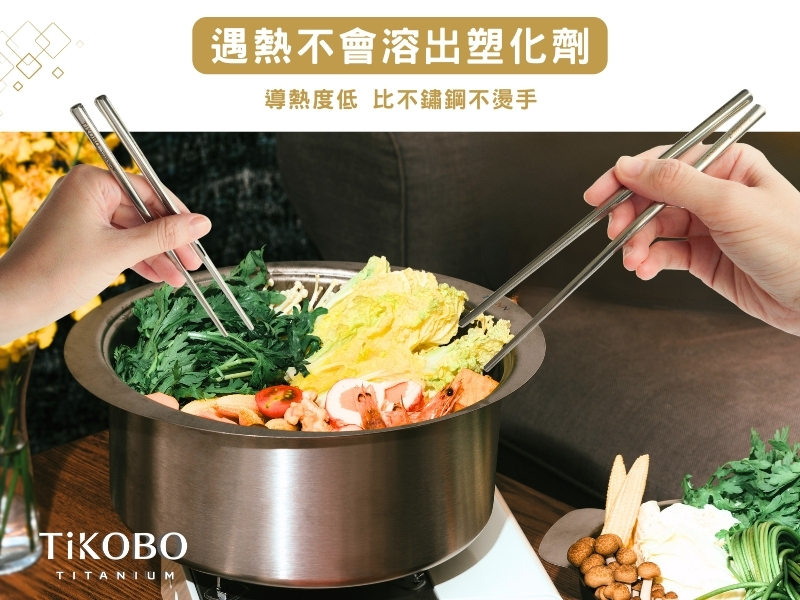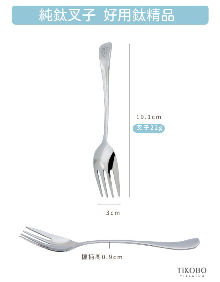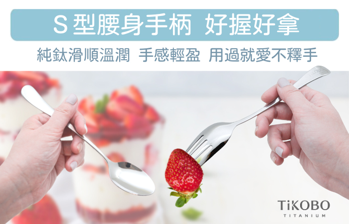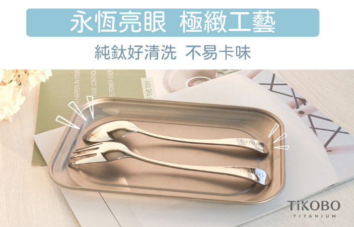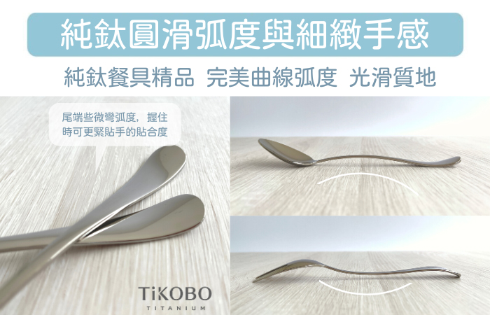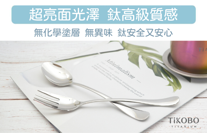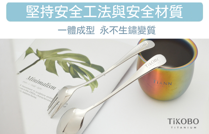 【TiKOBO 鈦工坊】純鈦湯叉筷2件組 附絨布套 含純鈦湯匙/純鈦叉子+純鈦防燙空心筷19cm 環保餐具 非不鏽鋼 無化學塗層