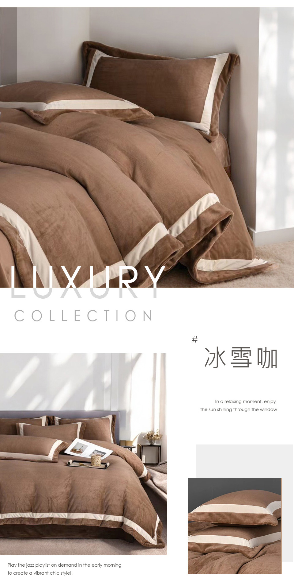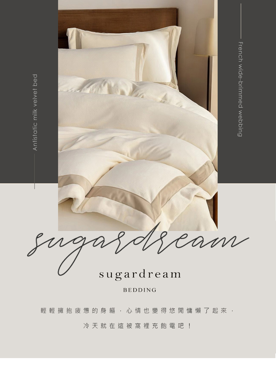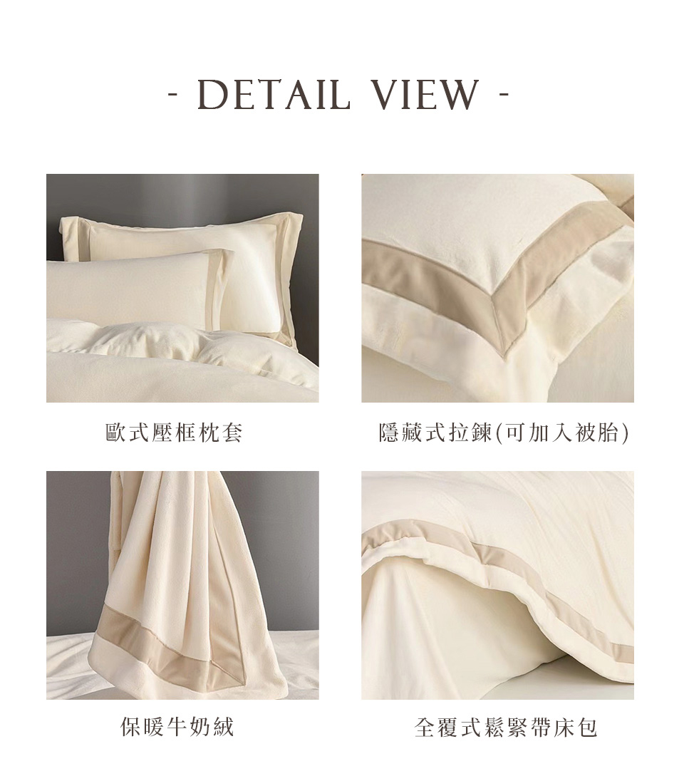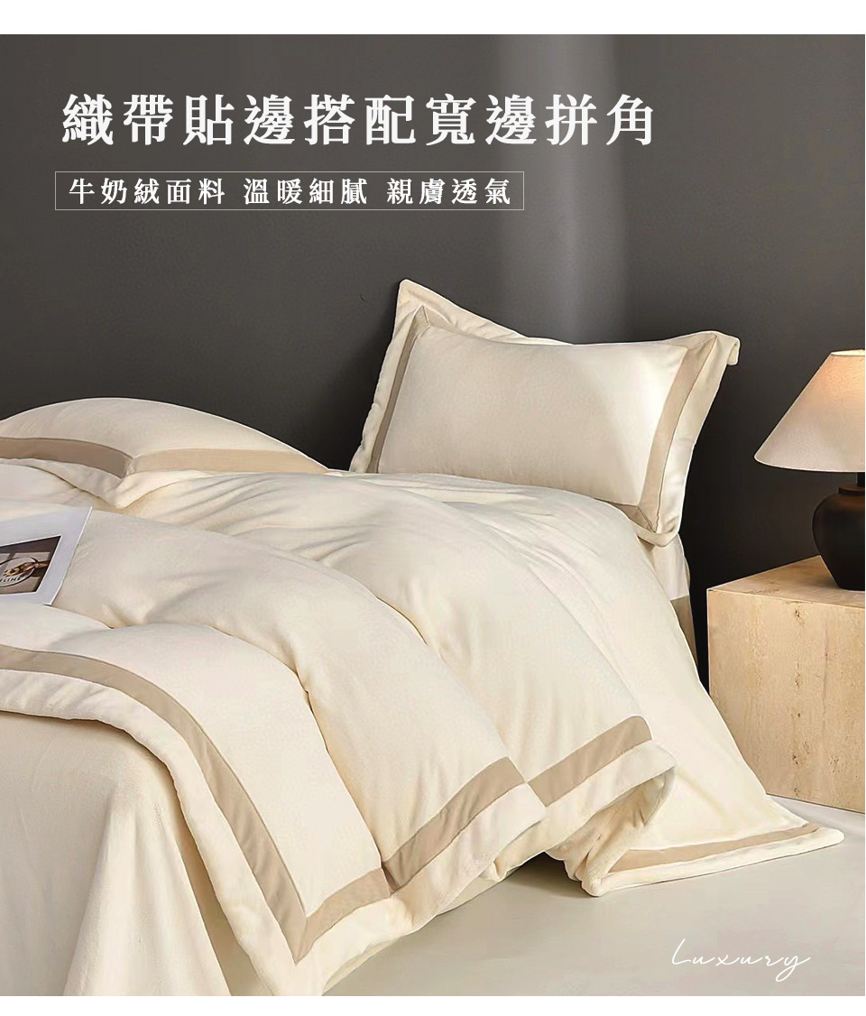 織帶拼接,浪漫優雅 超柔軟親膚觸感 ~牛奶絨 絨毛細膩順滑。入被保暖、熱感蓄溫,有效阻隔冷空氣,溫暖冷冷的冬天。