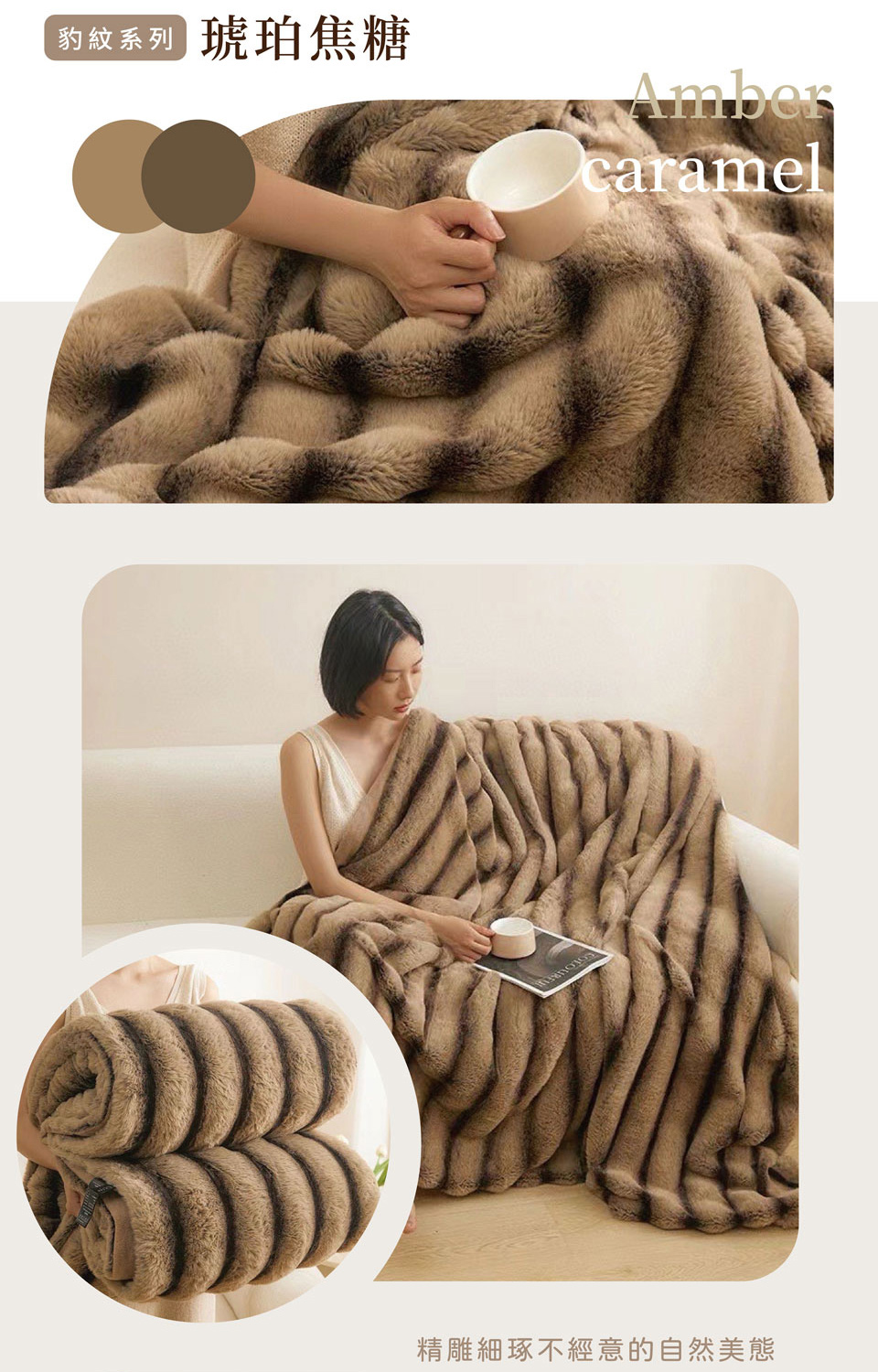 ✿ 皮草級高奢貴婦毯 奢華豹紋風格-義大利蘇力長絨兔毛毯 ✿