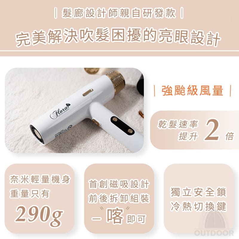 ⛺輕量機身:僅300克的輕量機身,方便攜帶,無負擔地享受吹風體驗。
