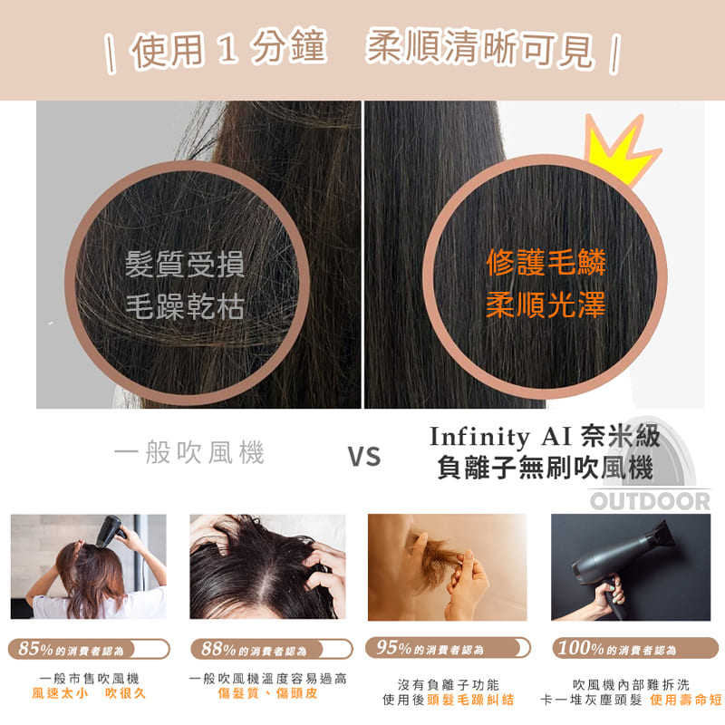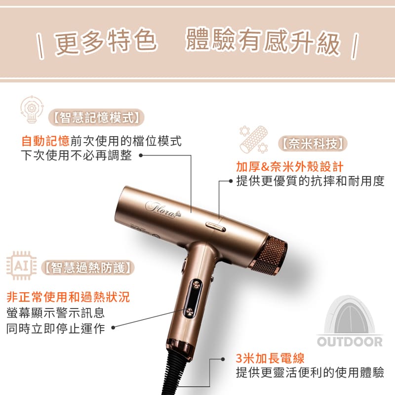 ⛺溫控無刷技術:搭載奈米級負離子技術,無刷馬達,高校精準溫控。