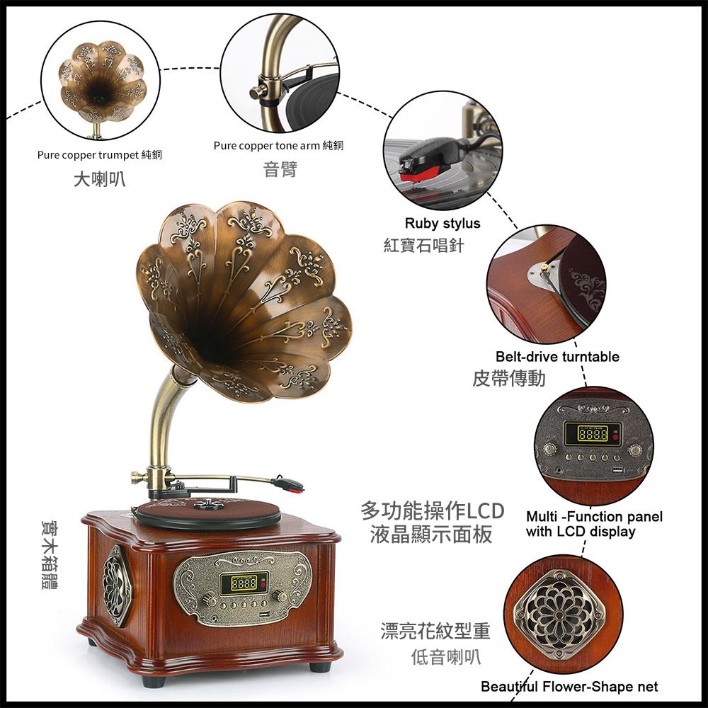 留聲機 黑膠機 喇叭唱片機 CD機 音箱 電唱機 可遙控 U盤播放 複古低音炮藍牙音響