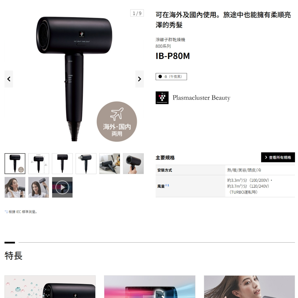 【SHARP 夏普】除菌離子溫控吹風機 國際電壓 國際版 (IB-P80M)