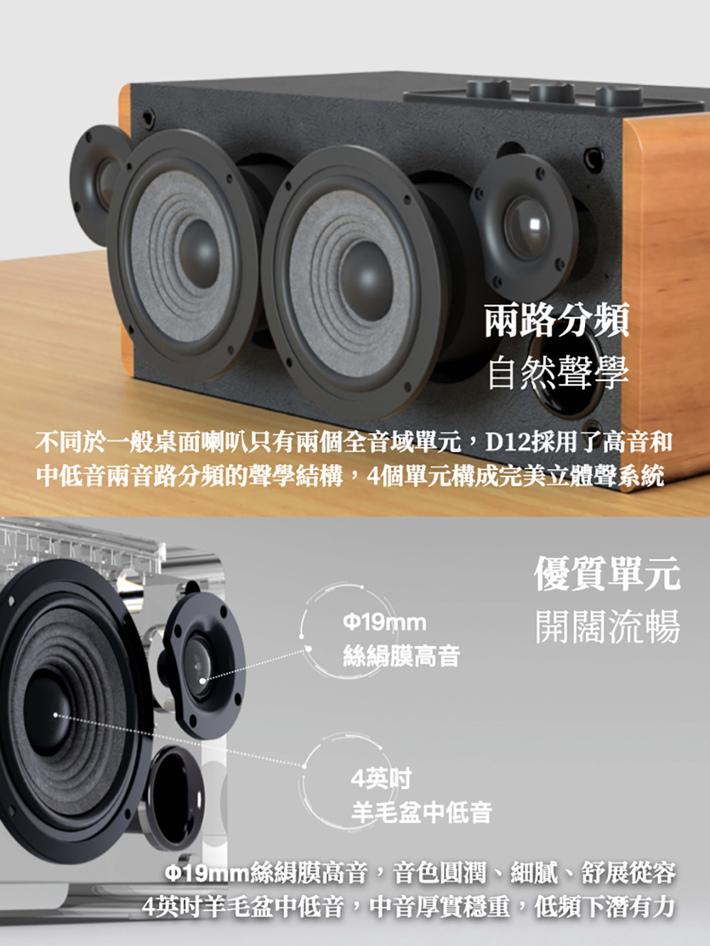 🔅 雙 4 英吋羊毛盆中低音 低頻下潛有力