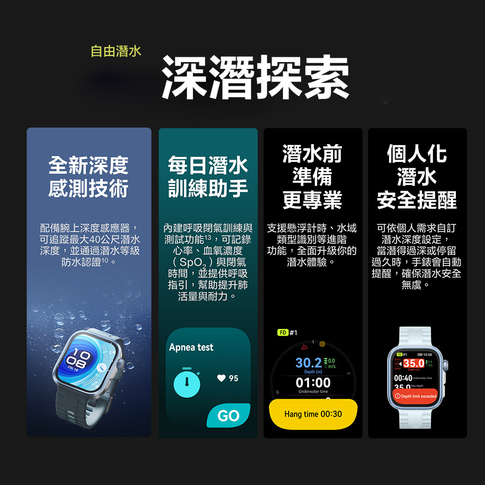 🔅5ATM防水等級,支援40米自由潛水、高爾夫運動模式